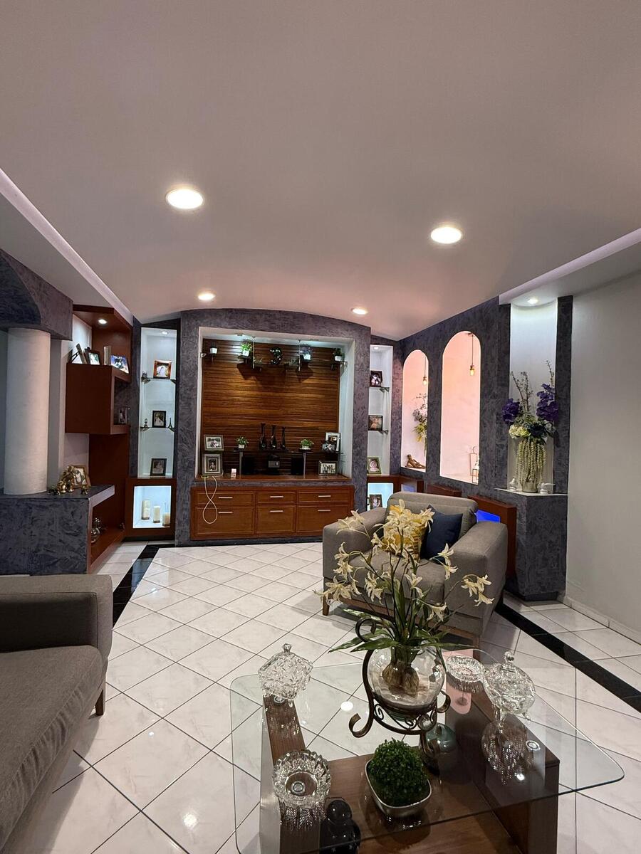 La recamara principal tiene vista a la terraza, closet vestidor y un baño completo. Las habitaciones estan ornamentadas con molduras de yeso y remates visuales. Los zoclos son de madera a juego con las carpinterías de la propiedad. En el tercer nivel de la propiedad se situa una quinta recamara secundaria, cuenta con baño completo totalmente privado. El área de lavado y lavadero semitechado. Cuenta con tanque estacionario, cisterna de 10 mil metros cúbicos con bomba sumergible.