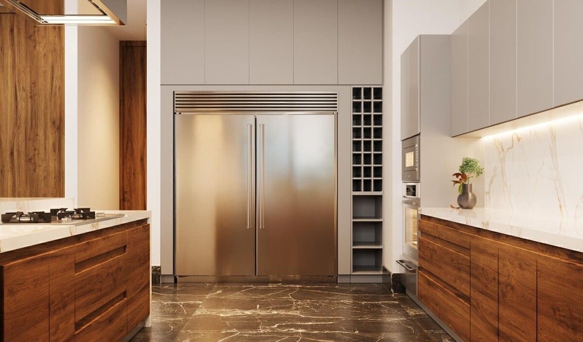 ✔ Integrated designer kitchen with island and quartz countertop.