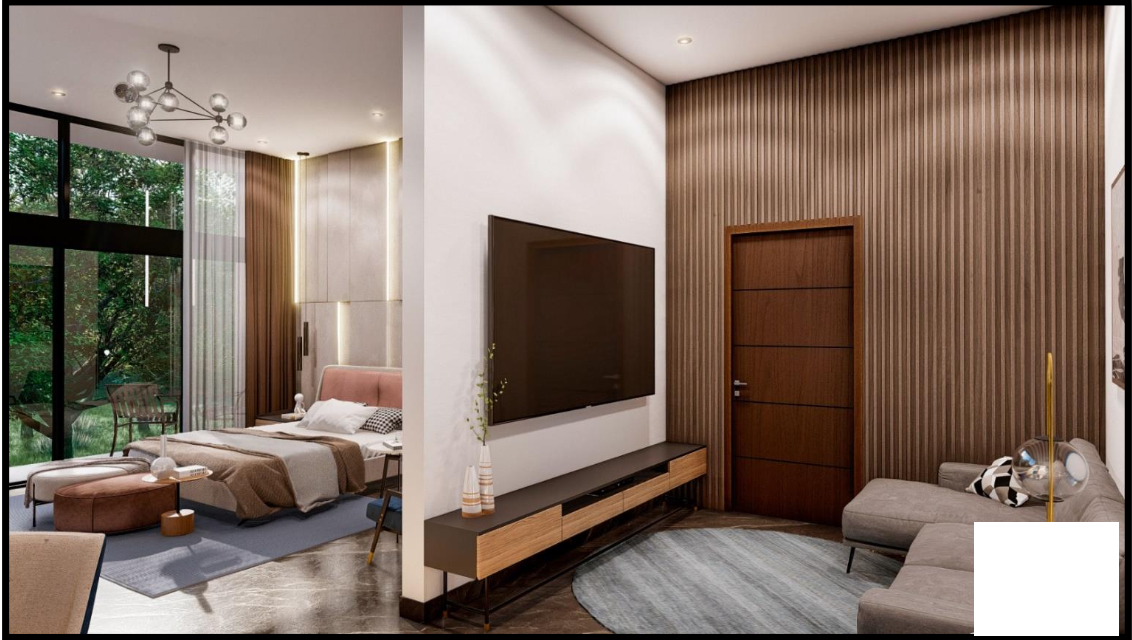 Recámaras: 4 en planta alta y 1 estudio/recámara/cine en planta baja.