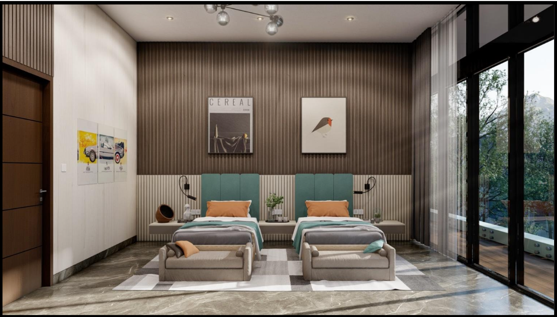- Tempered glass railings on stairs and balconies of the bedrooms.