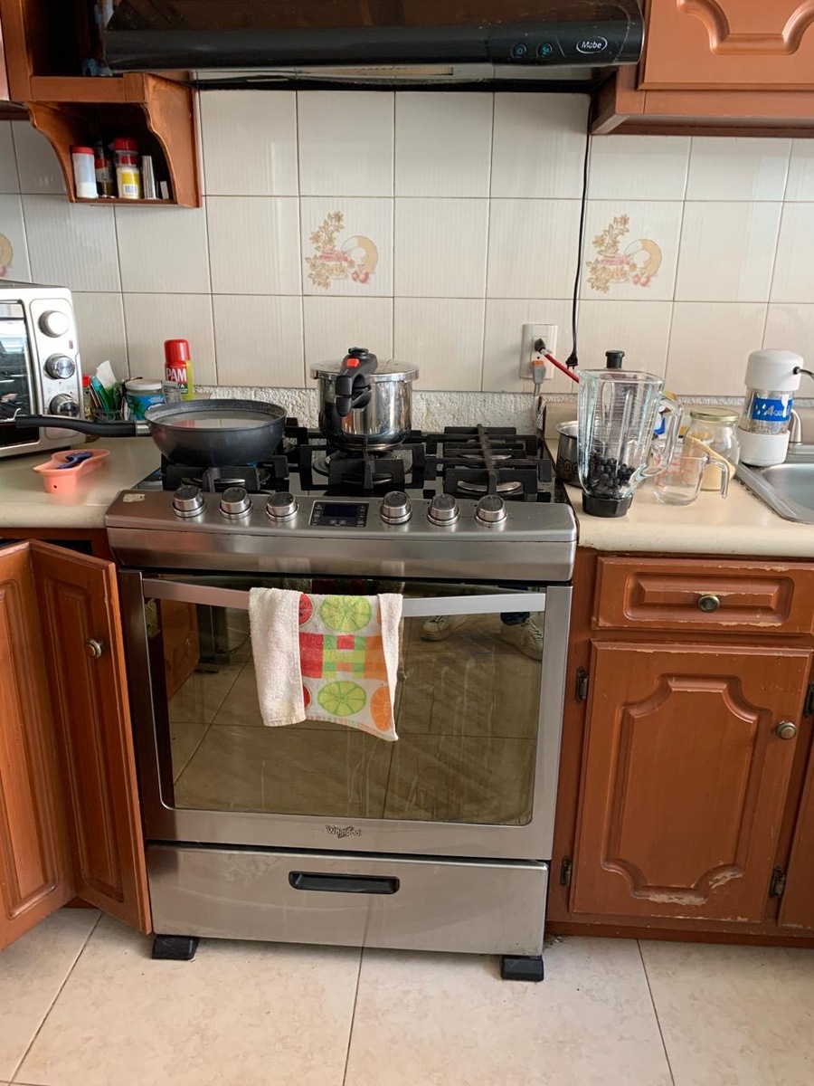 Cochera para 1 auto, pequeño jardín al frente, sala, comedor, cocina equipada, patio de servicio una área techada, 1 Rec. con closet y baño completo en Planta Baja