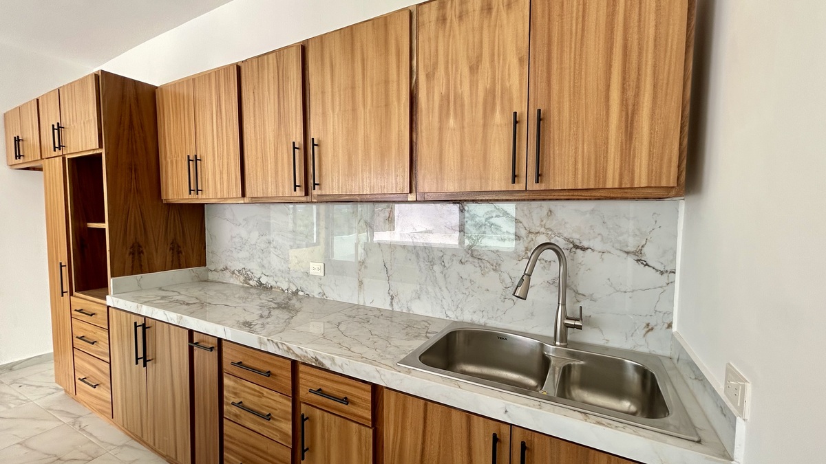 💎Cocina integral equipada, con madera de parota, estufa eléctrica, horno y freidora de aire