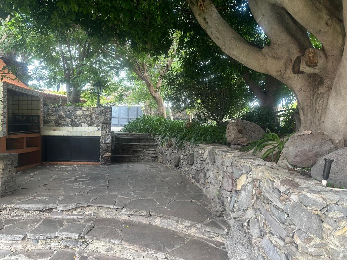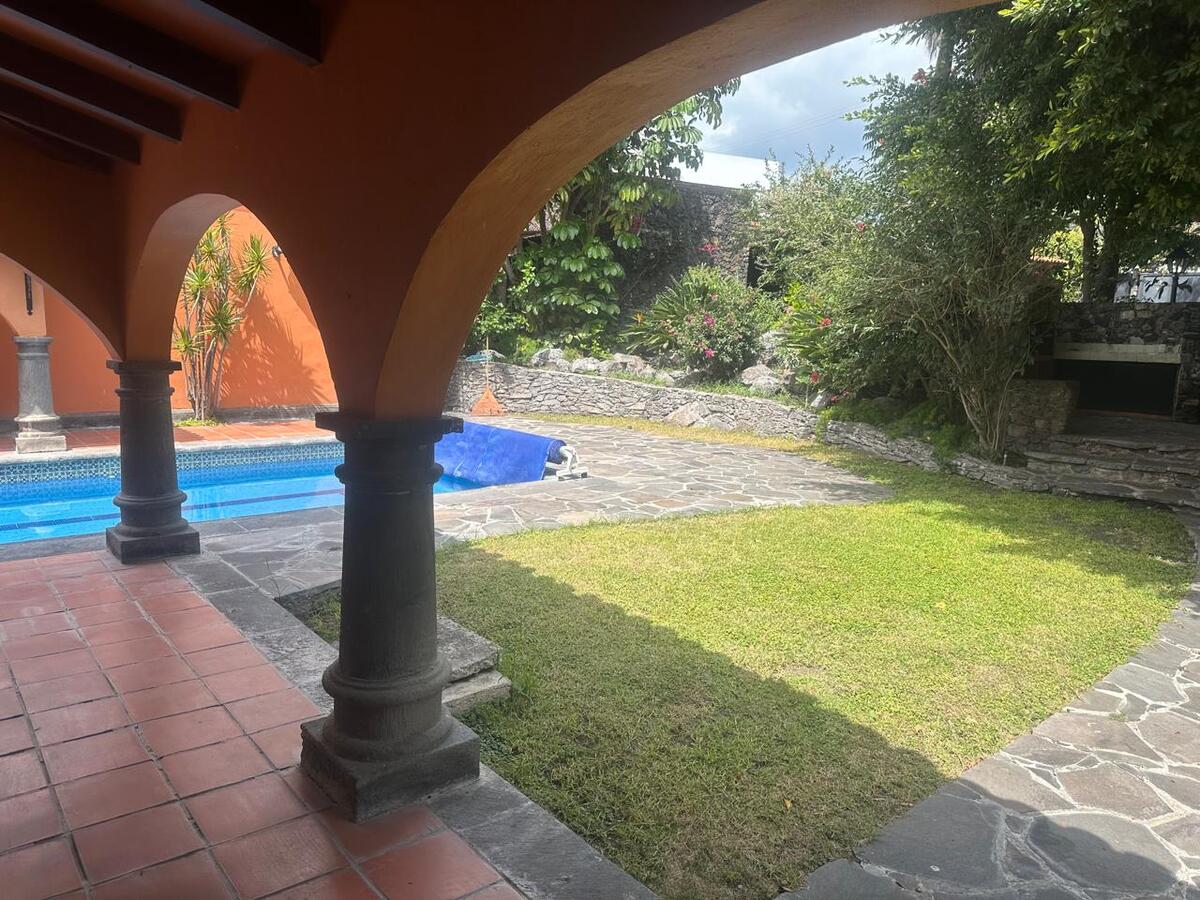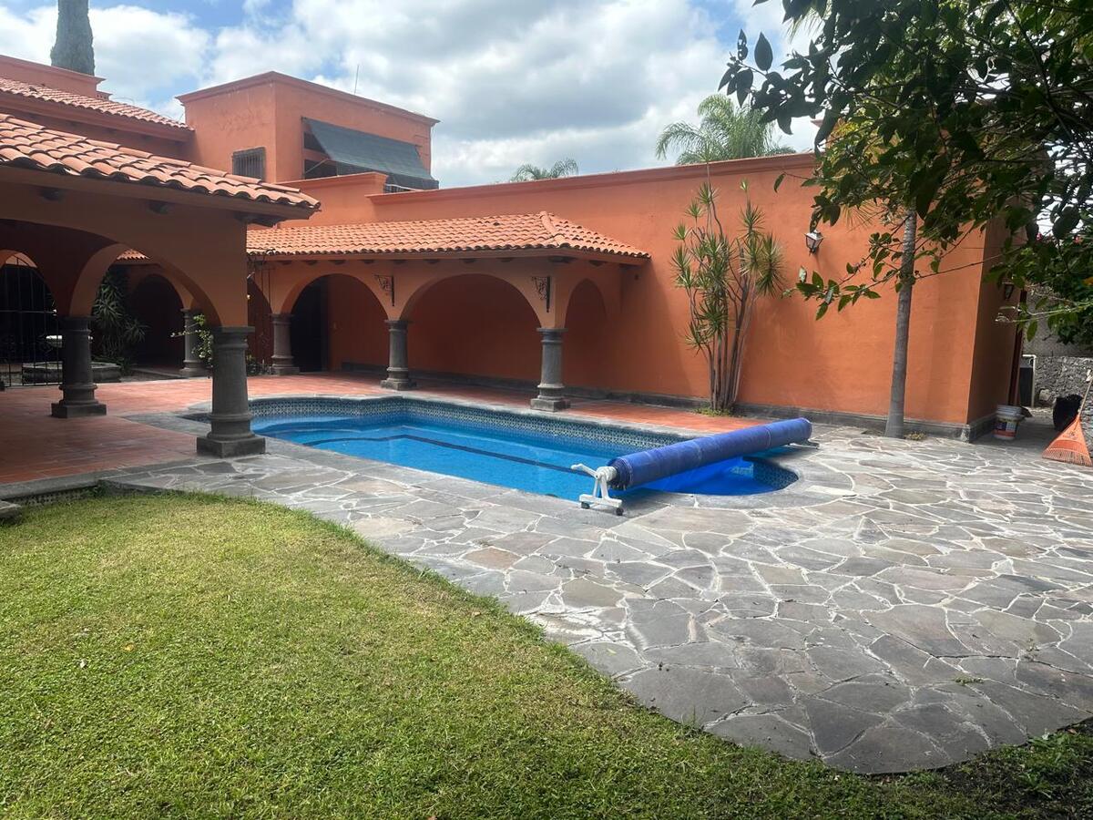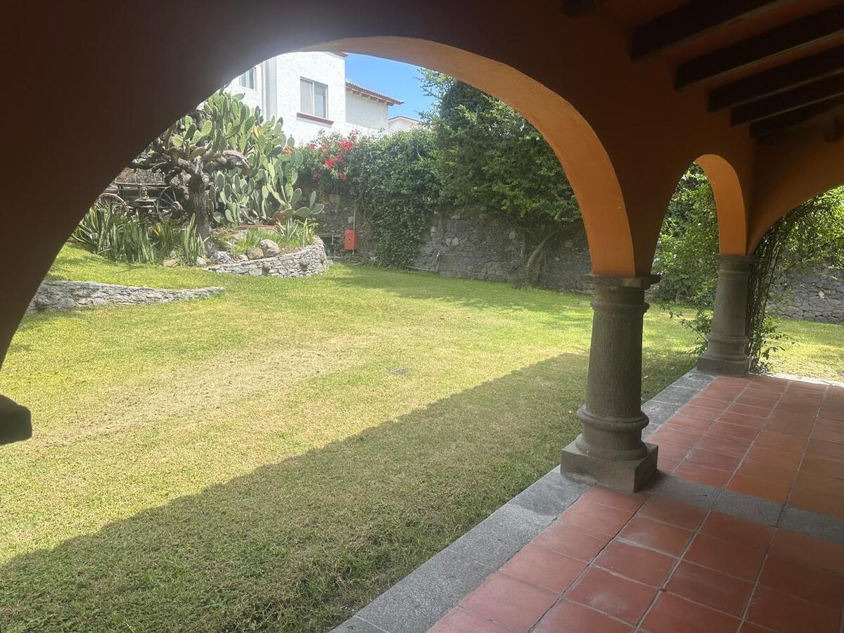 Jardín espectacular que rodea toda la casa, con huerto, alberca privada climatizada, área de asador y terrazas para disfrutar al aire libre