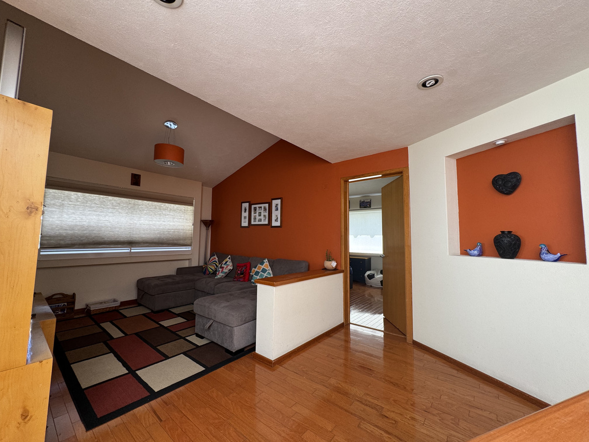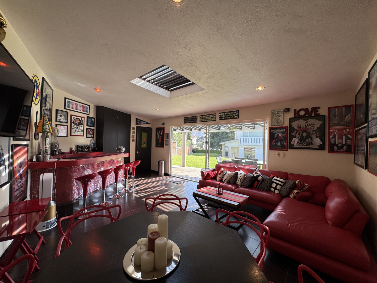 - Sala con ventanal amplio, cuenta con área de bar de madera.