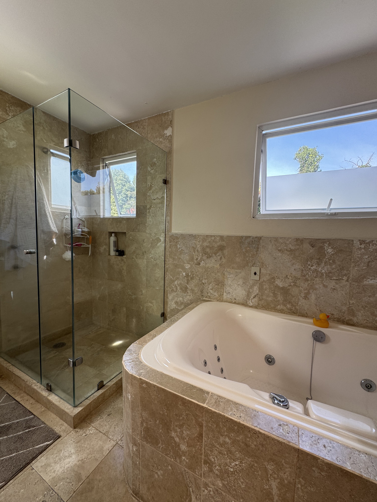 - Second bedroom with garden view, has a walk-in closet and full bath.