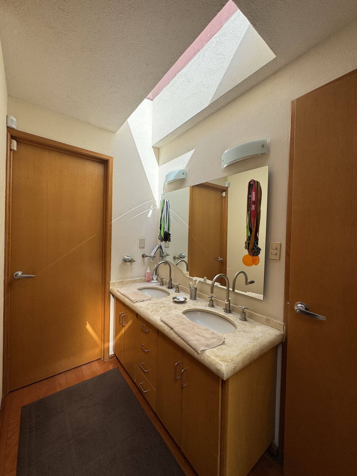 - Habitación principal muy amplia, con vista al jardín, consta de vestidor amplio, baño con doble lavabo, jacuzzi, regadera independiente con excelente ventilación.