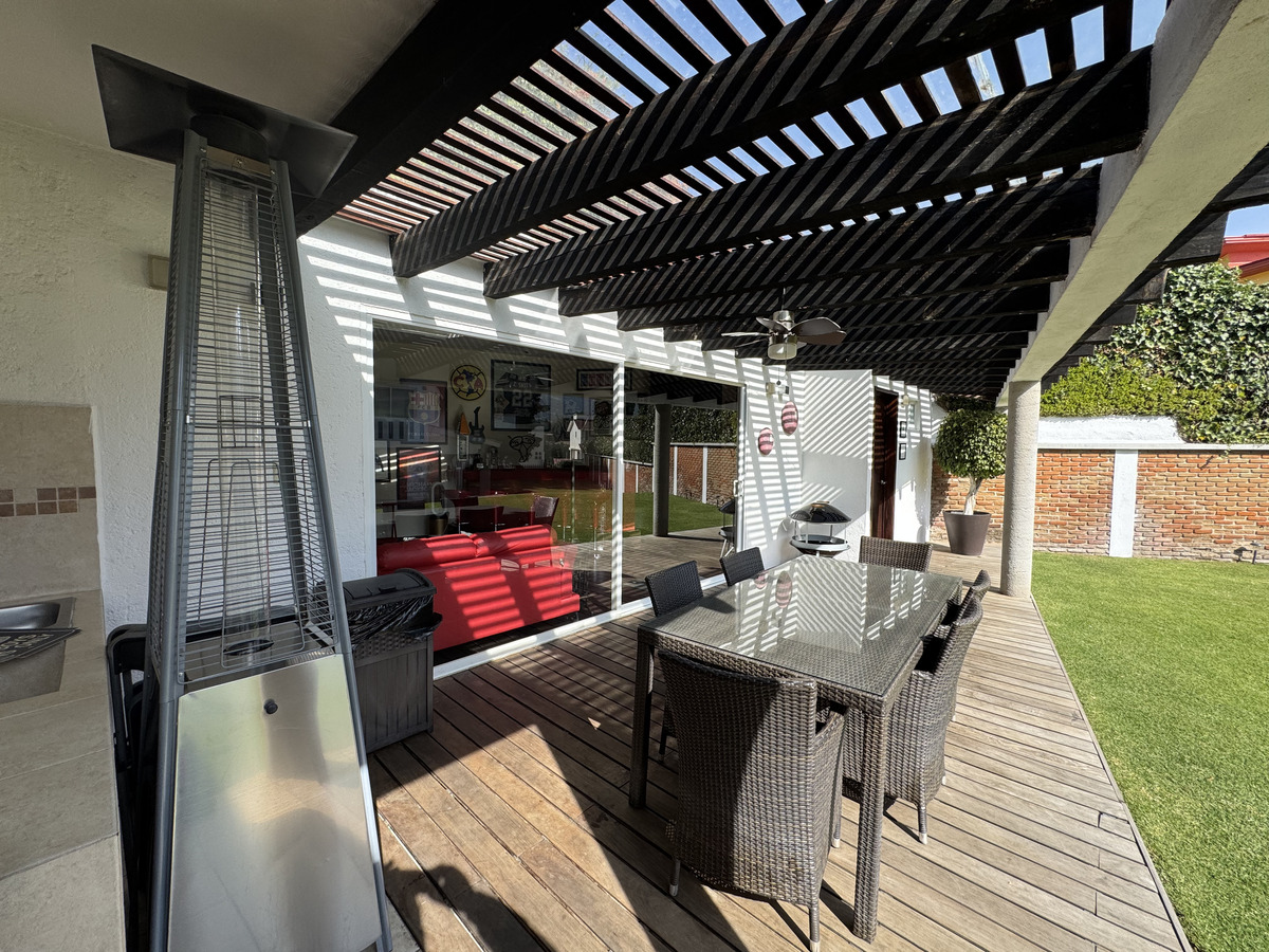 - Jardín principal amplio en magníficas condiciones con terraza con techo, cuenta con entrada y salida desde el comedor y el antecomedor.
