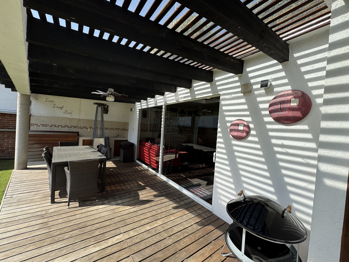 Casa en Venta con acabados finos con pisos de madera, mármol, cocina equipada, terraza, un jardín amplio y en magníficas condiciones y un área de juegos / bar con terraza con medio baño.