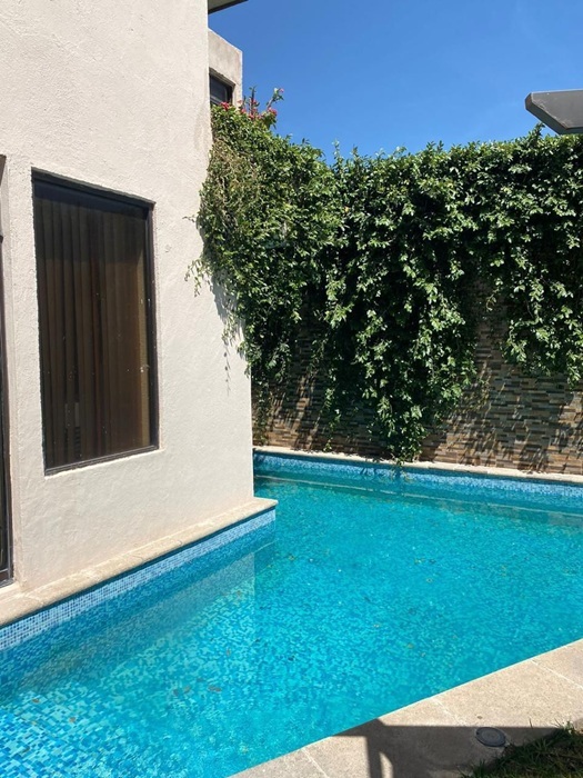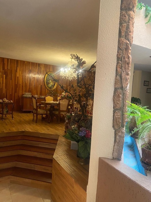 Casa en excelente ubicación a una cuadra de Himalaya, cuenta sala a doble altura con madera y chimenea, comedor, cocina integral con ante comedor, estudio-bar en planta baja, área de Tv en planta alta, 3 recamaras con baño la principal con vestidor y jacuzzi, cuarto de lavado, cuarto de servicio con baño, jardín interior y jardín trasero, alberca con calentadores solares y cuarto de equipos de filtración, aljibe de 10 m3, renovada con pisos, azulejos, canceles de cristal templado y closets/vestidores.