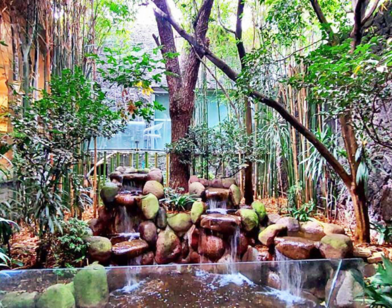 From the entrance, we can appreciate a foyer and a spacious hallway that leads us to the magnificent living room, passing through a charming bar and an interior garden with waterfalls, whose sound fills the entire house, providing tranquility.