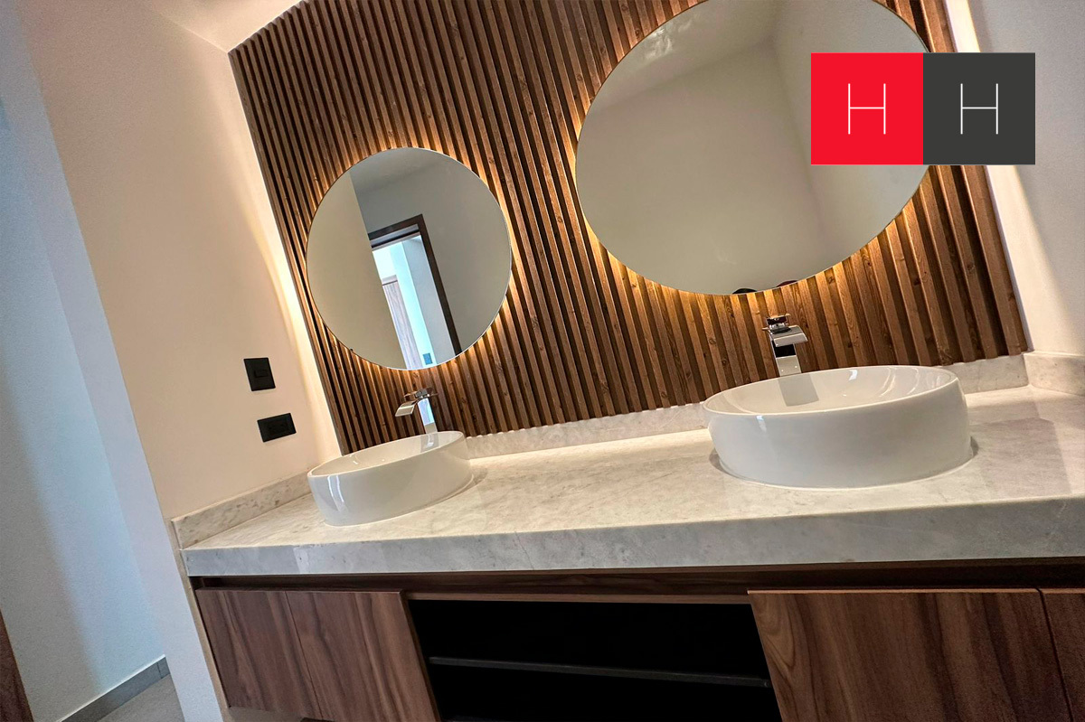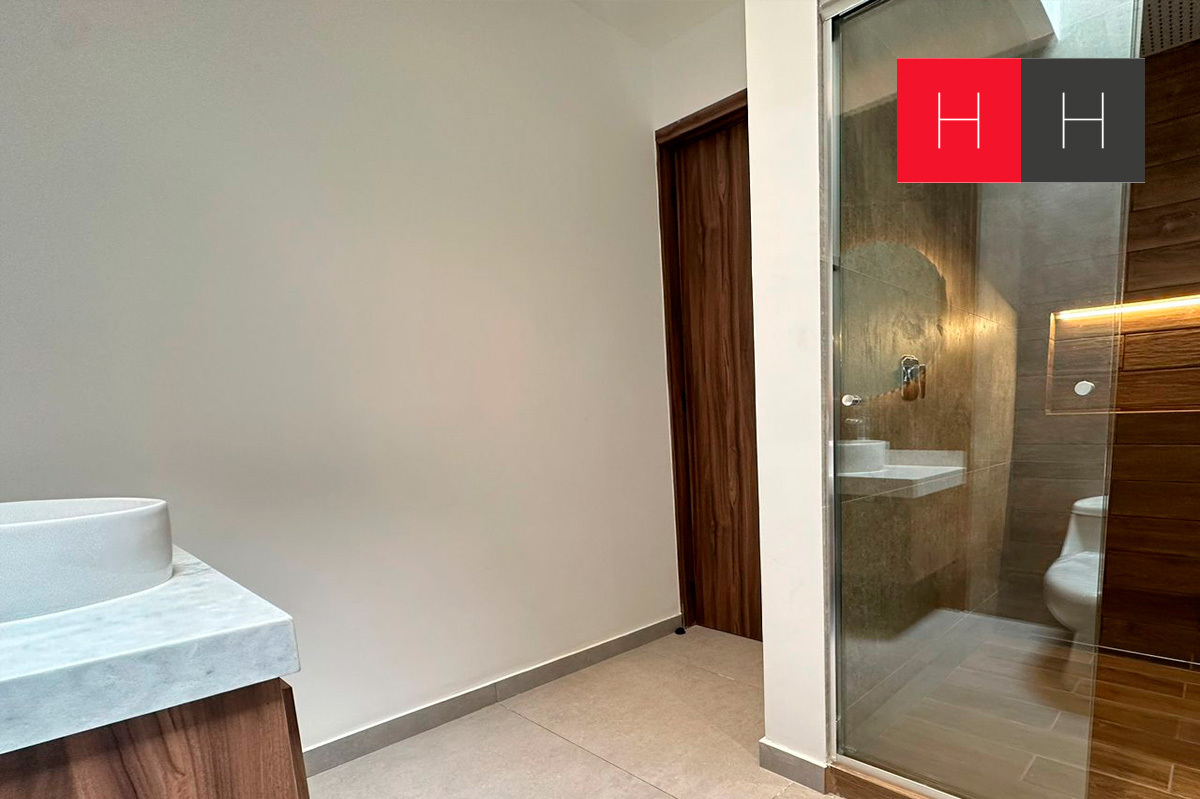 En primer piso 2 recámaras secundarias con clóset comparten baño completo. Recámara principal con vestidor baño completo y balcón