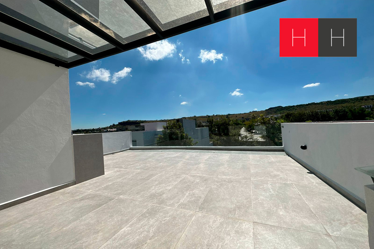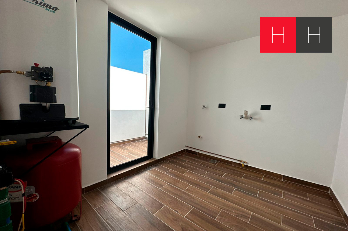 On the second level, there is a TV room and a laundry area with a drying patio, a full bathroom, and a roof garden with a grill.Se encuentra dentro de un cluster con seguridad privada la casa es a estrenar con áreas verdes cuenta con preparación de aire acondicionado iluminación lead y preparación para aire acondicionado y lavavajillas.
