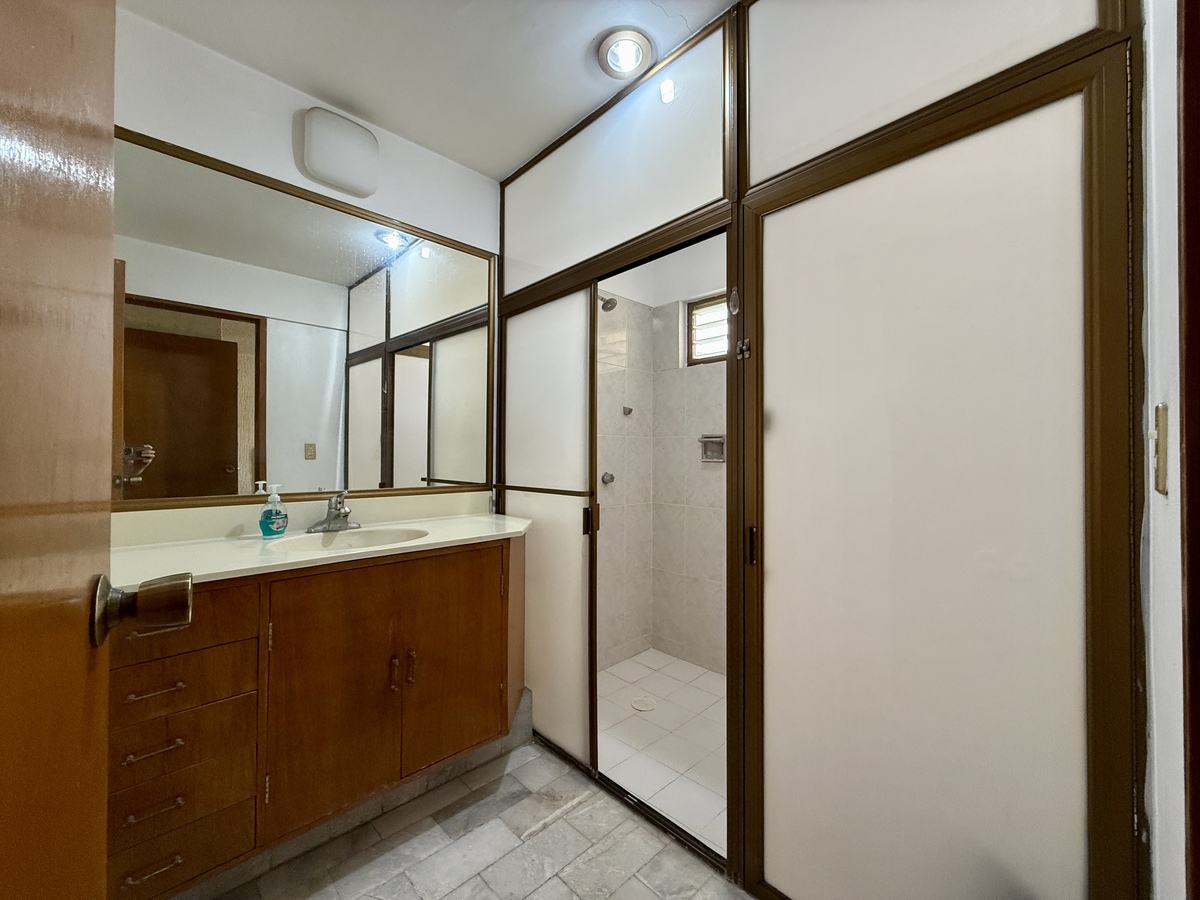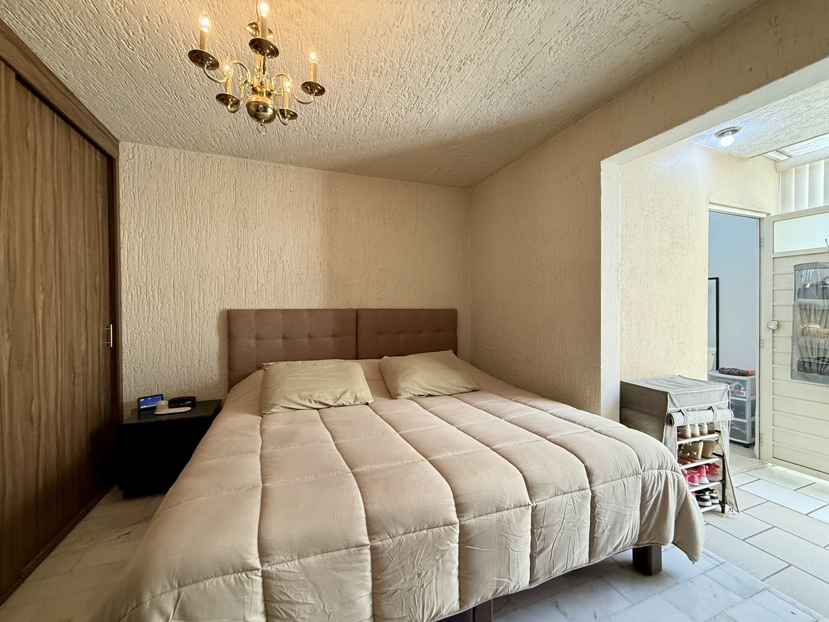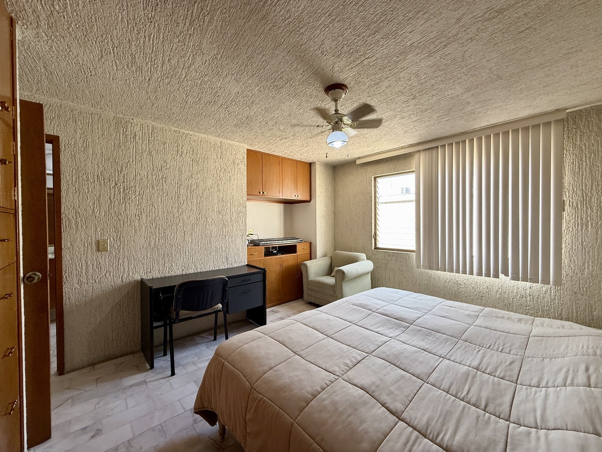 - 2 recámaras con clóset; una de ellas con baño completo. La otra puede usarse como estudio también (gran ventaja para familias con personas mayores o quienes buscan practicidad)