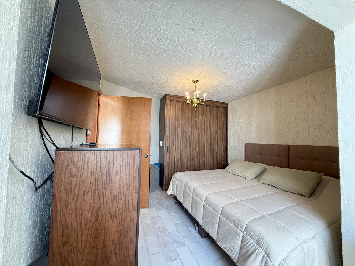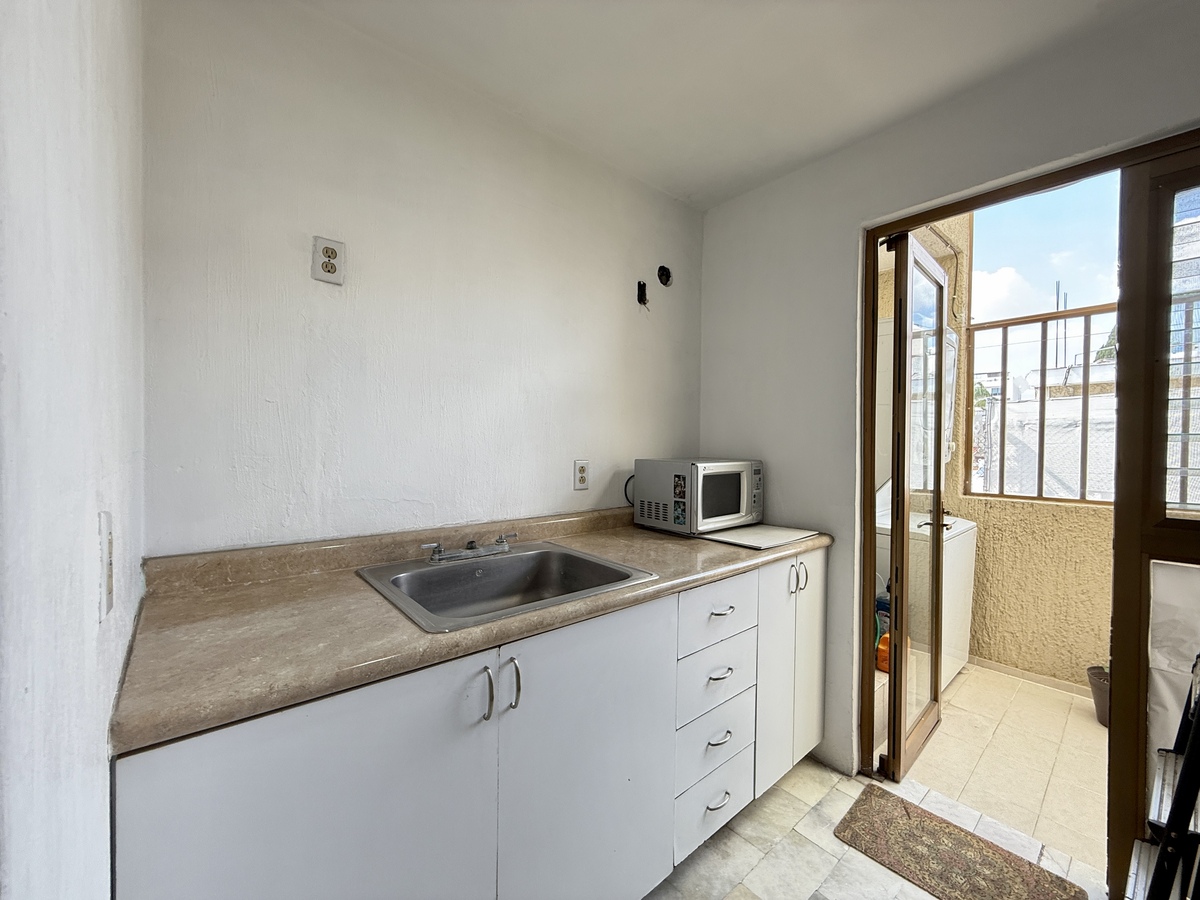 - Cuarto de TV / sala de estar (incluso puede funcionar como recámara adicional o de servicio). Este mismo espacio tiene enseguida una cocineta, patio independiente y baño.