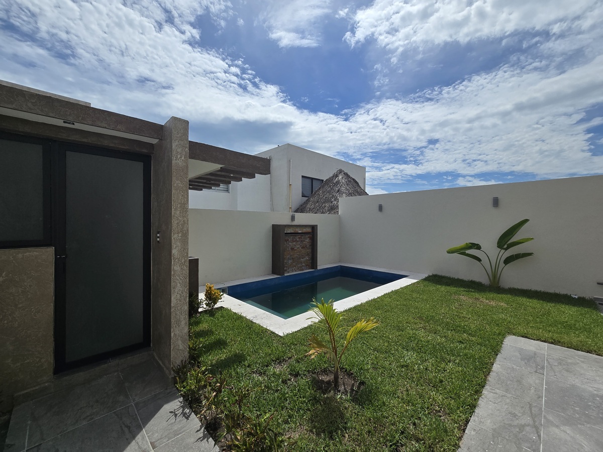 - Alberca privada con asador, cascada, pérgolas de concreto y baño completo.