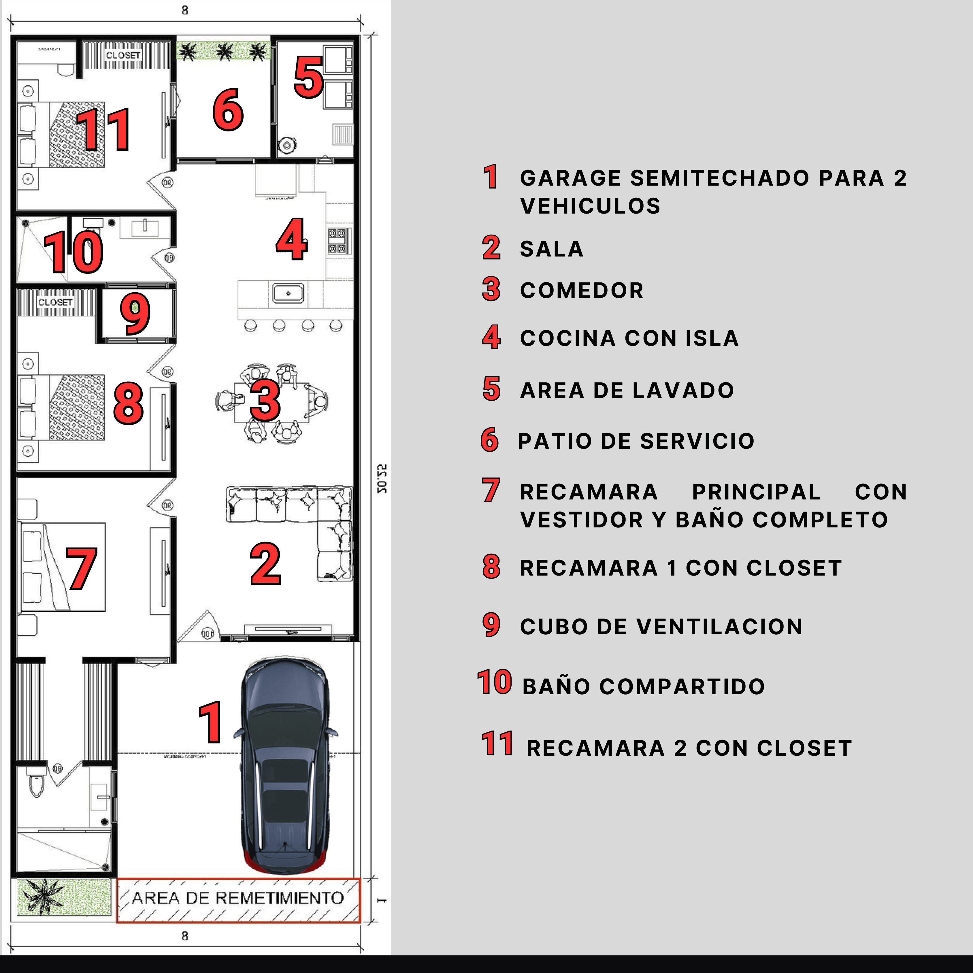 Las características que conforman esta casa constan de lo siguiente: