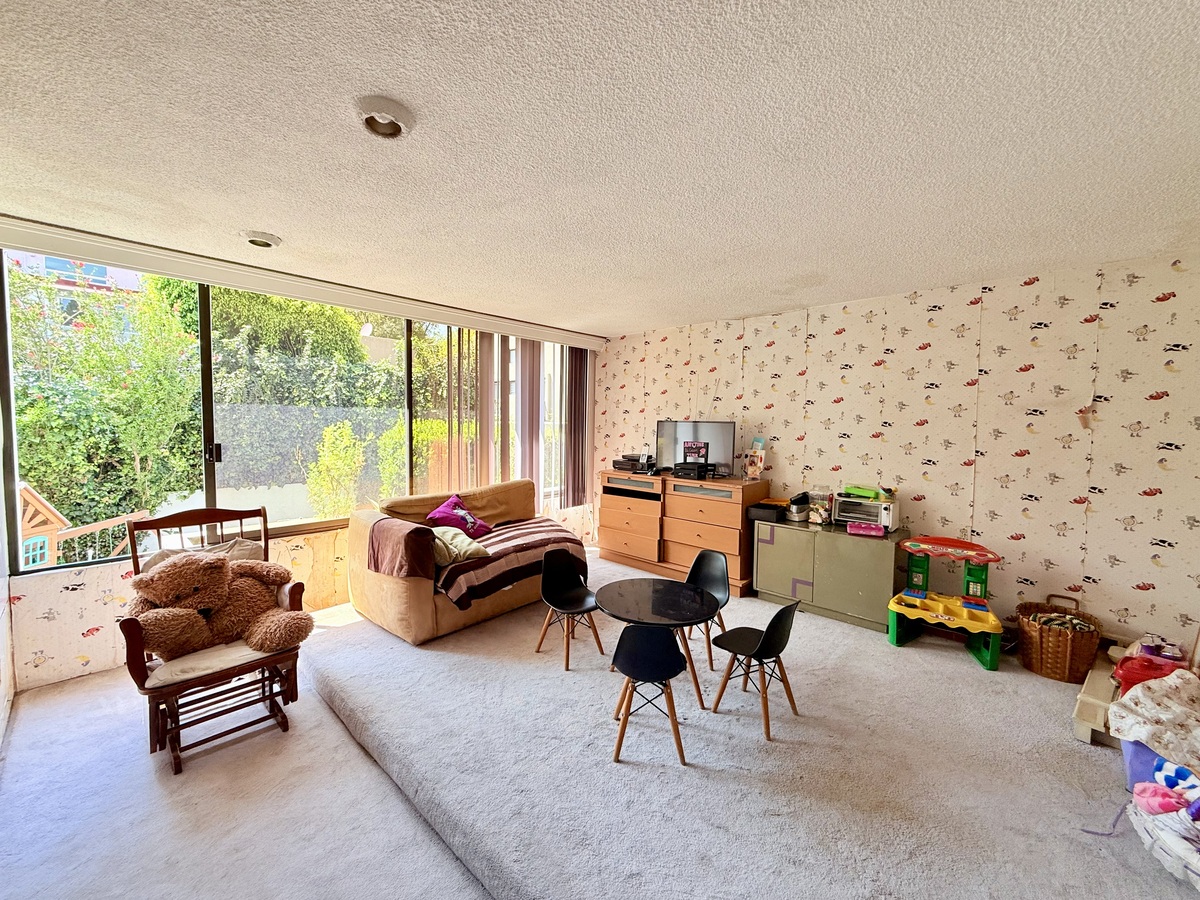 On the ground floor, it has a foyer/study, living room (sliding doors integrate with the garden for events), dining room, guest bathroom, kitchen with island and pantry, breakfast nook, and a large GARDEN.