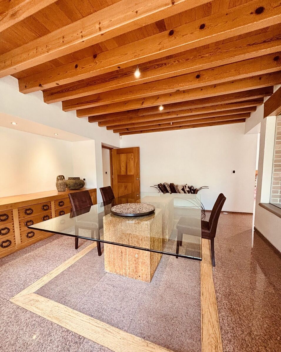Luxury finishes throughout the house, excellent natural lighting, high ceilings, wooden beams, domes, tree views, and a beautiful garden, white cedar wood in doors, floors, windows, stair railings, walk-in closets, and closets in wood, Italian granite, wrought iron, stone, porcelain tile, tempered glass, air conditioning, and heating, among others.