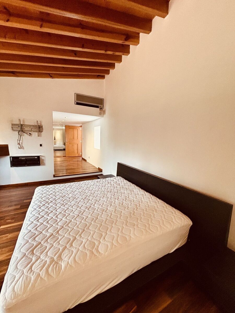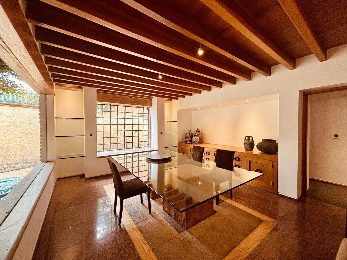 Luxury finishes throughout the house, excellent natural lighting, high ceilings, wooden beams, domes, tree views, and a beautiful garden, white cedar wood in doors, floors, windows, stair railings, walk-in closets, and closets in wood, Italian granite, wrought iron, stone, porcelain tile, tempered glass, air conditioning, and heating, among others.