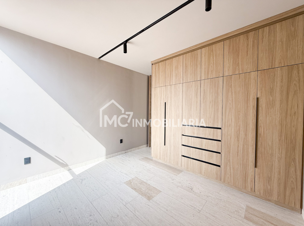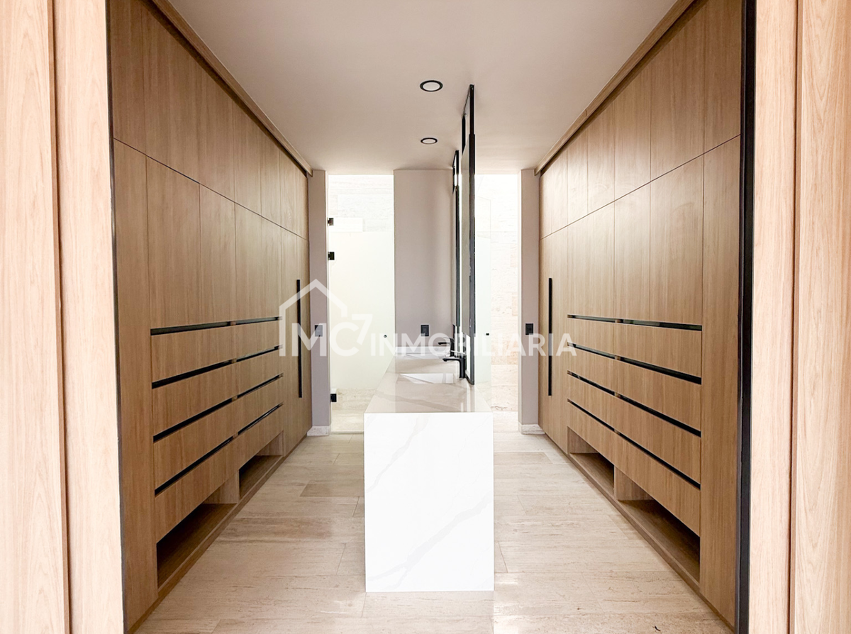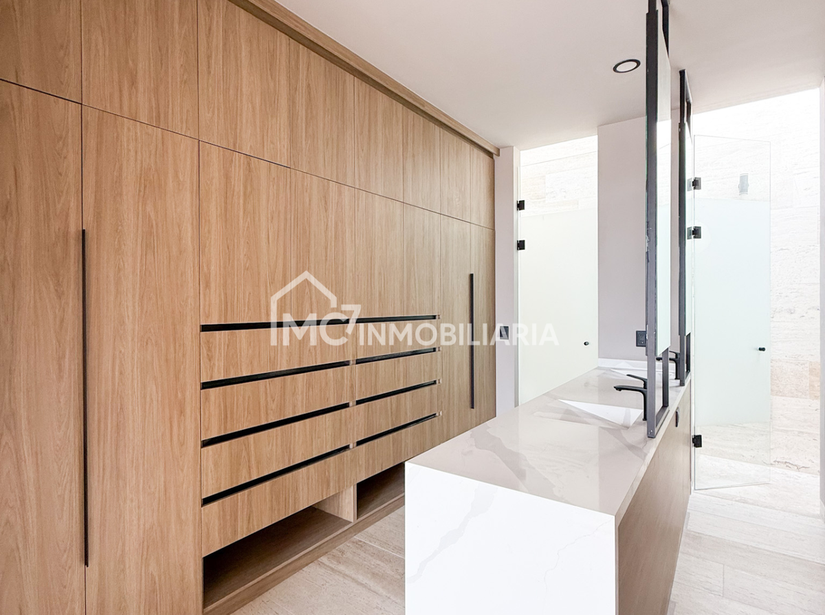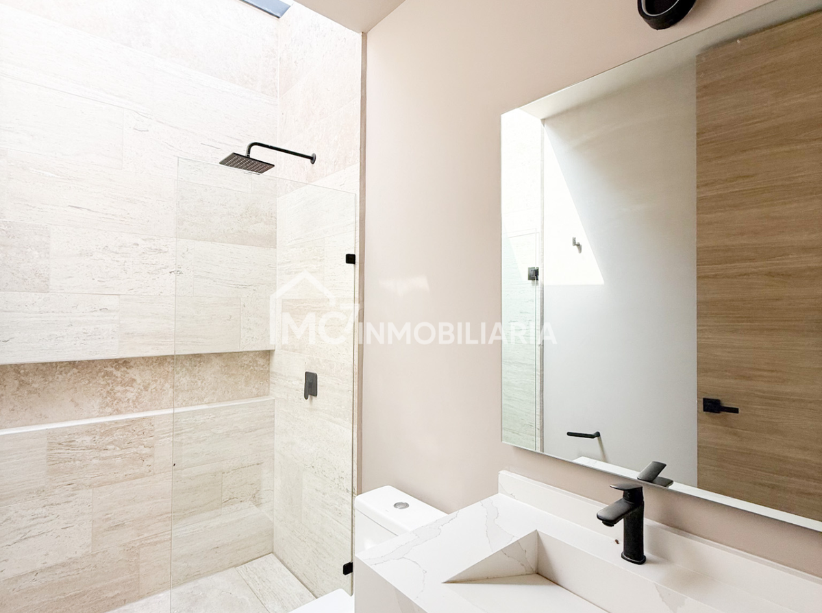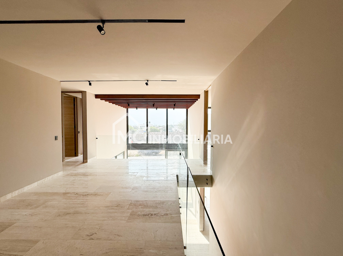 En planta alta, esta misma doble altura conecta un amplio family room con sus tres recámaras, cada una con baño completo.