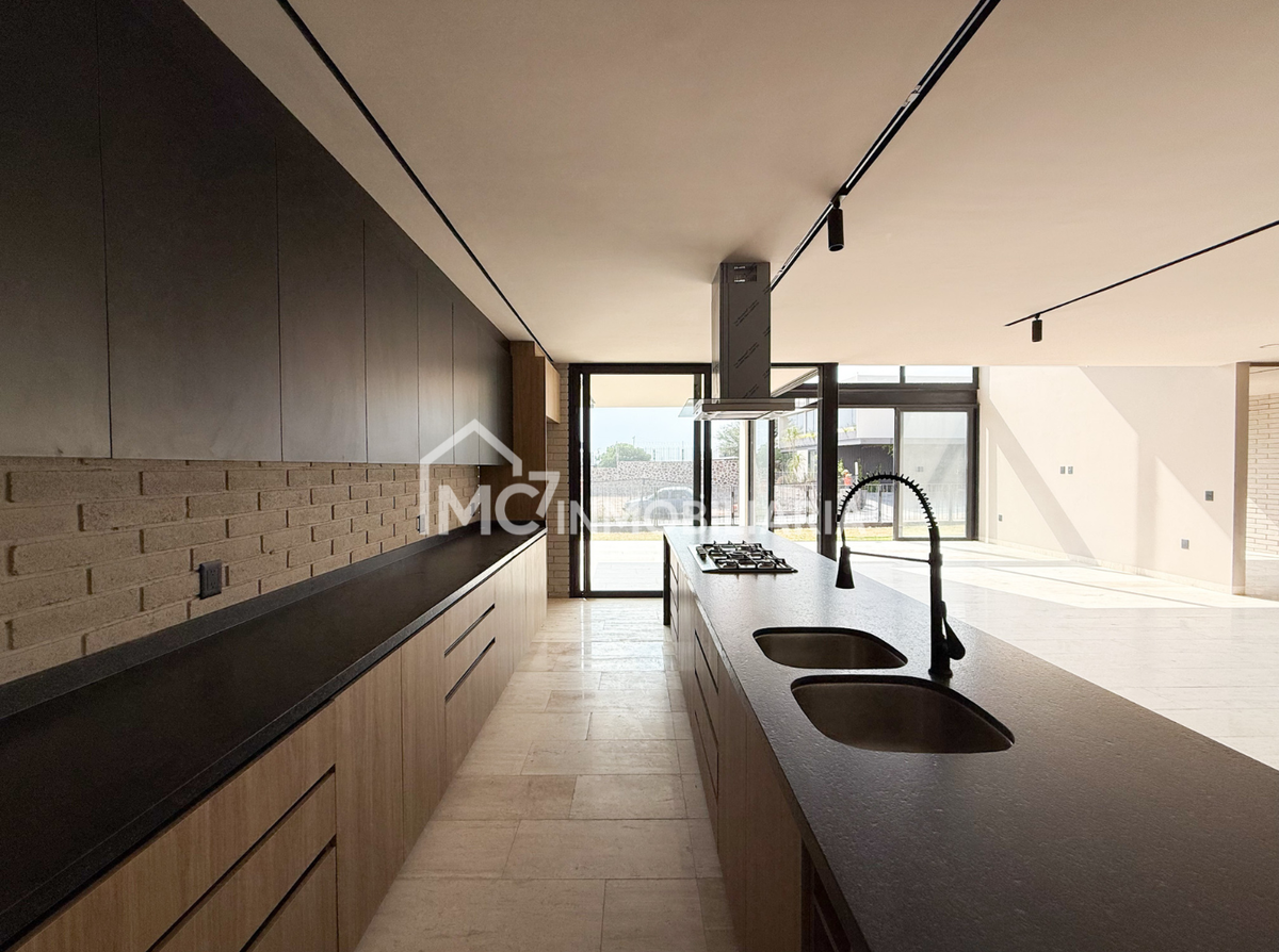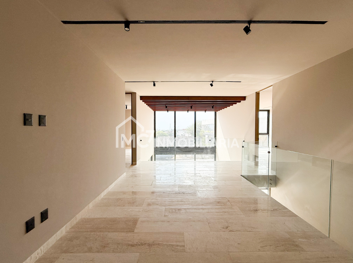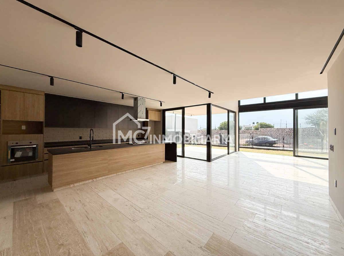 Casa en esquina con estudio en planta baja, imponente doble altura en el alma de la casa que conecta con sala, comedor, terraza y jardín, generando una amplitud única.