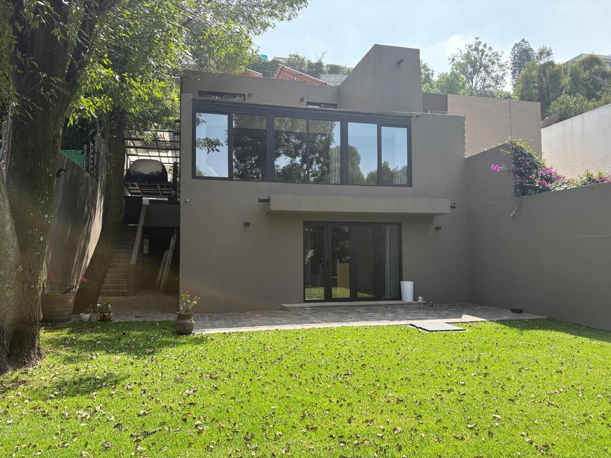 Sala, comedor con salida al jardín, medio baño de visitas, cuarto de juegos o bien una cuarta recamara con baño completo con salida al jardín, Bar, despacho, cuarto de servicio con baño, lavandería, 2 bodegas, un taller y garaje para 5 autos. La casa tiene paneles solares, cisterna de 3000 litros, ventanas de PVC con doble cristal.