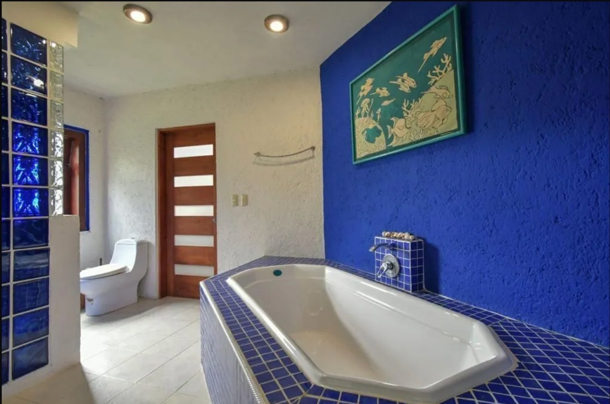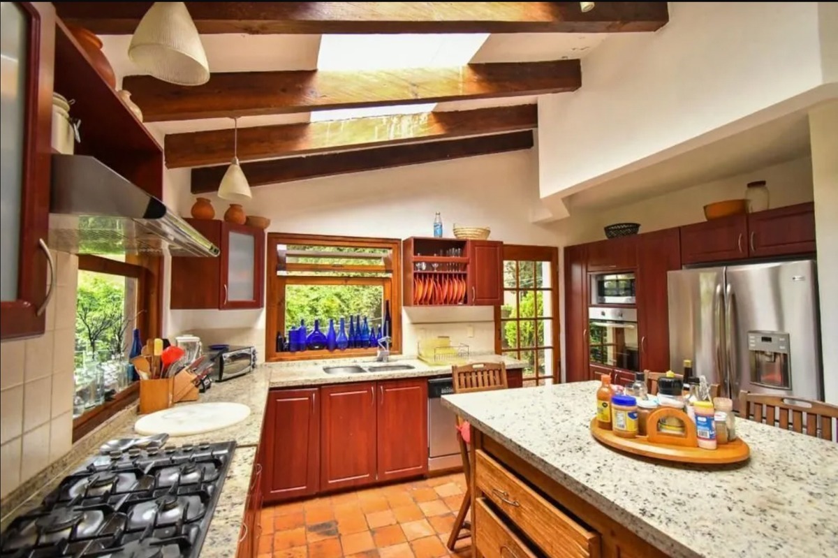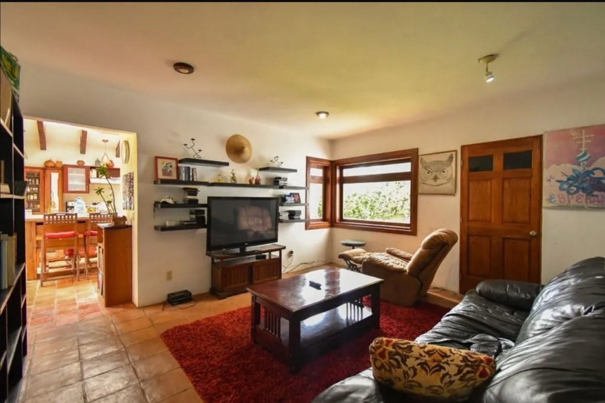Tiene una recámara en planta baja con baño completo y una sala de televisión con medio baño, además de las áreas de servicio y lavandería.