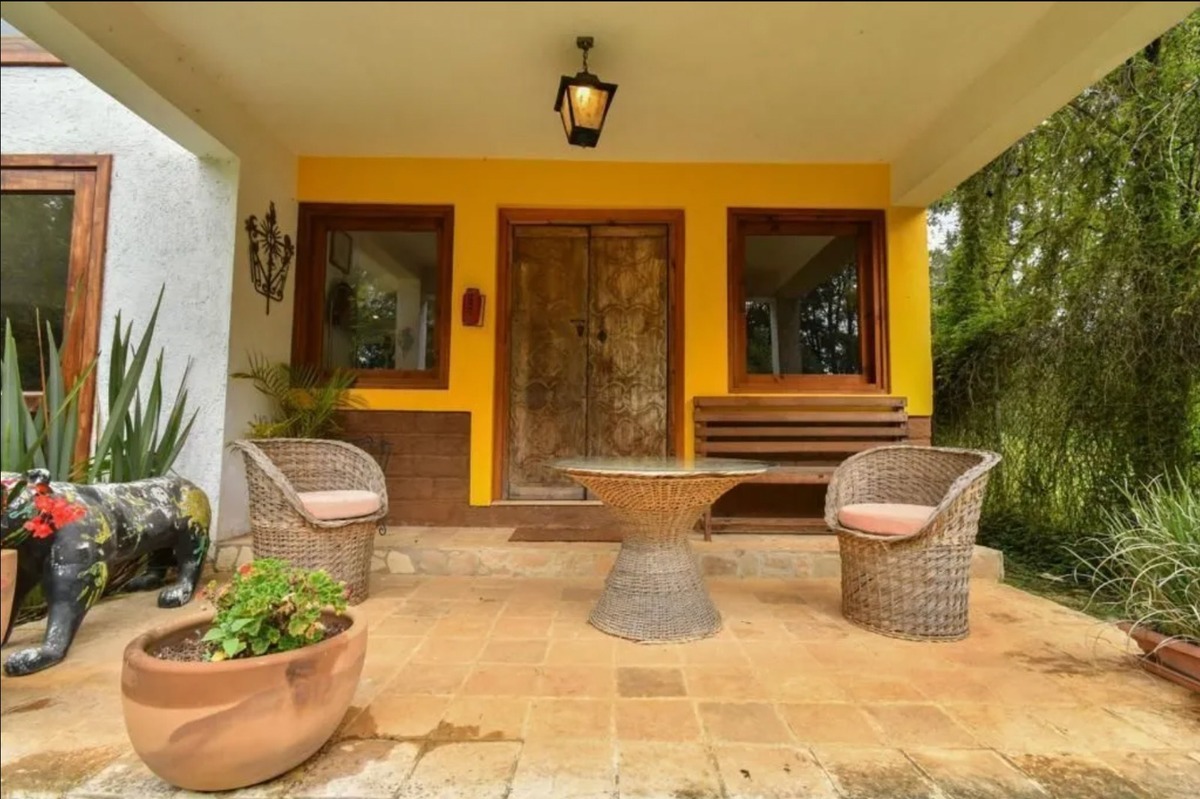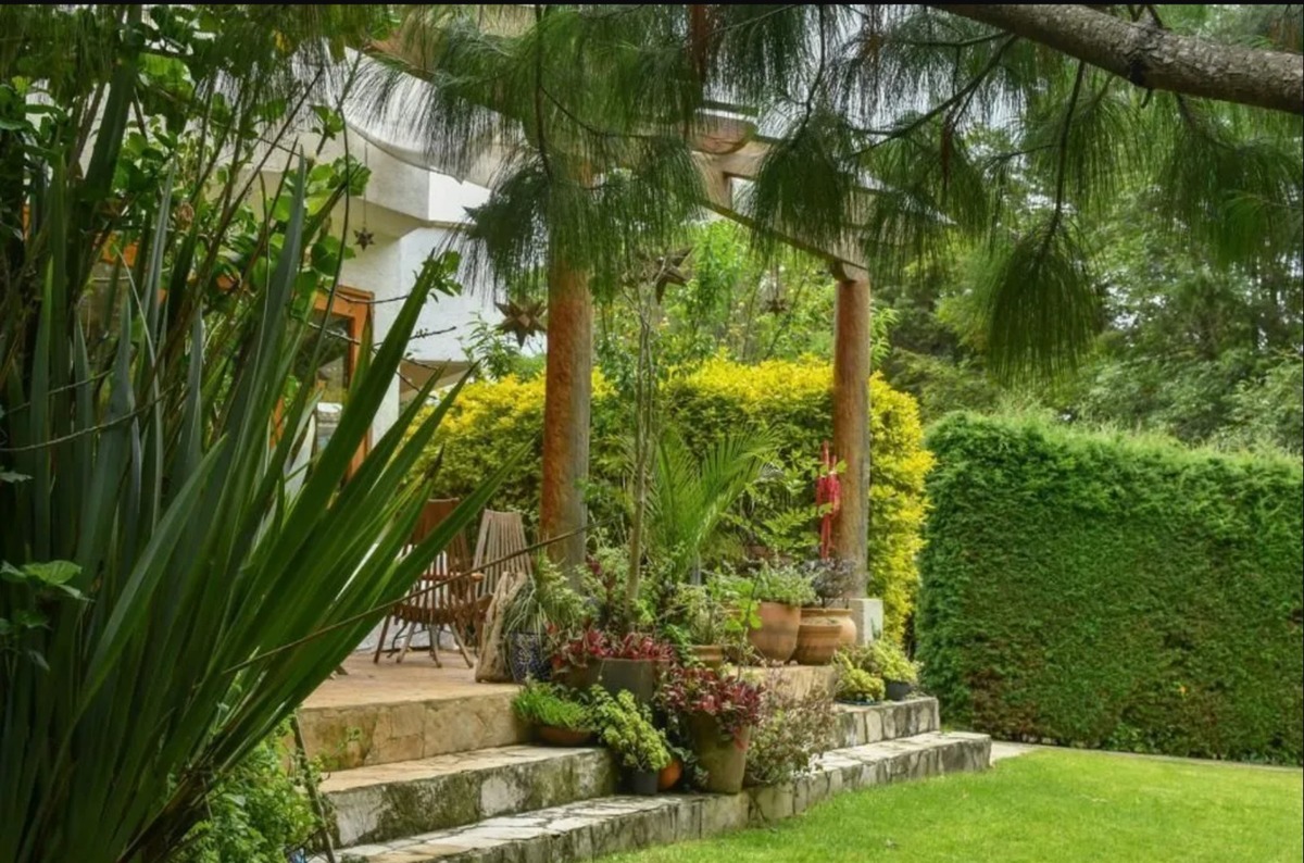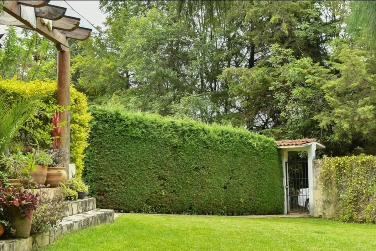 Ubicada en una zona residencial campestre, la propiedad tiene un extenso jardín rodeado de árboles.