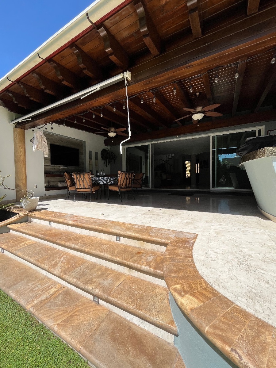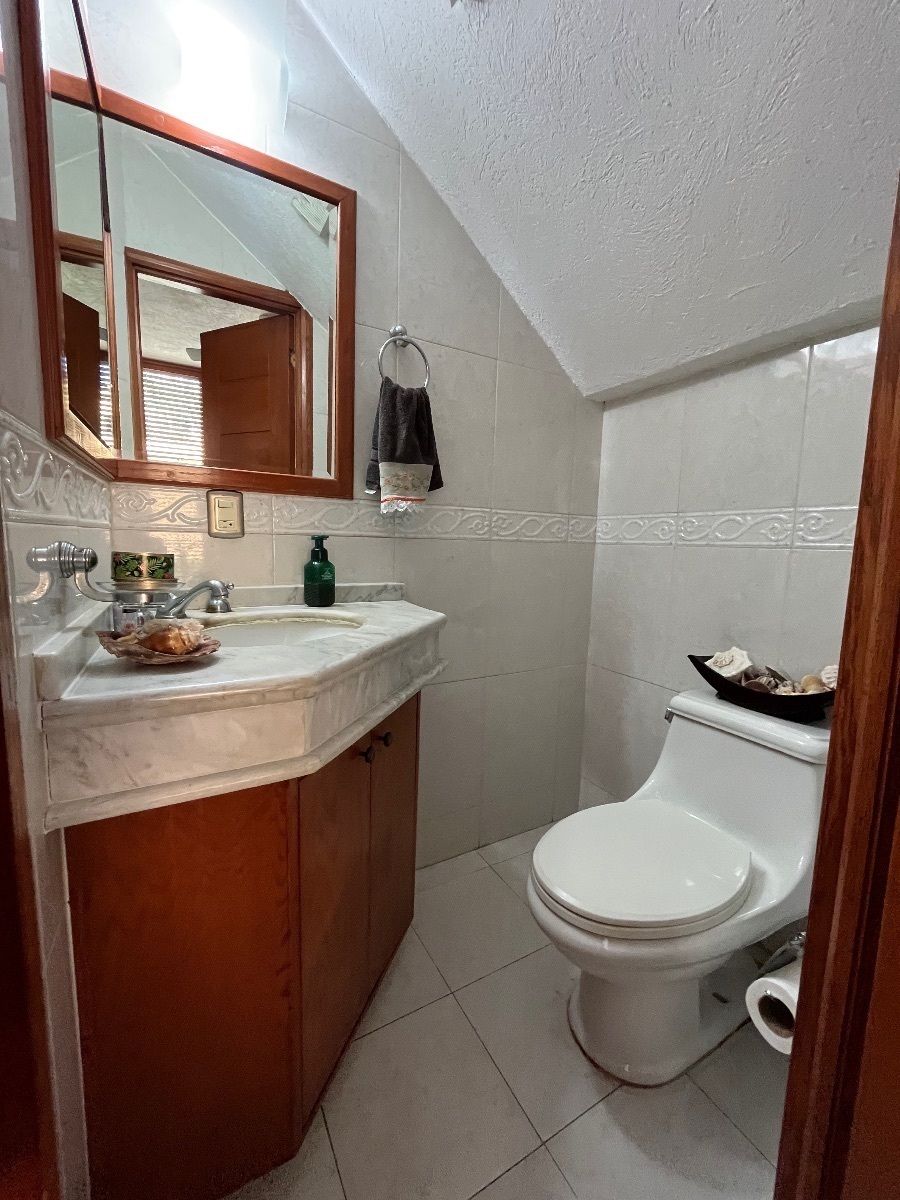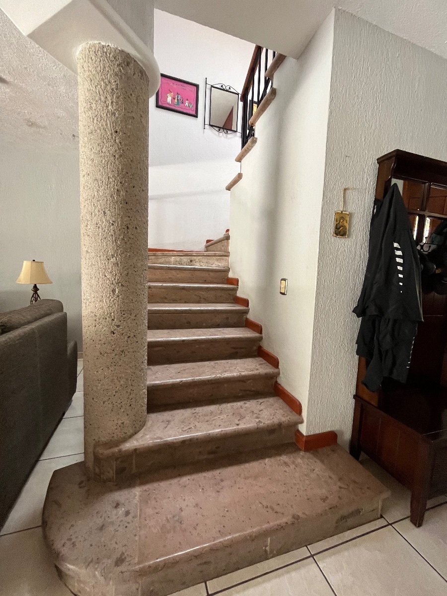 En la planta alta, encontrarás dos recámaras secundarias con vista al jardín, cada una con baño completo y amplios closets, así como la recámara principal con balcón, gran vestidor, baño completo y jacuzzi, ideal para relajarte después de un largo día. Además, la casa cuenta con calentador solar para tu confort y ahorro energético.