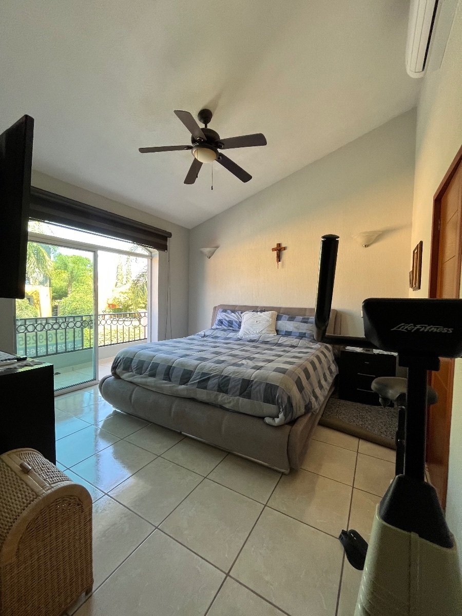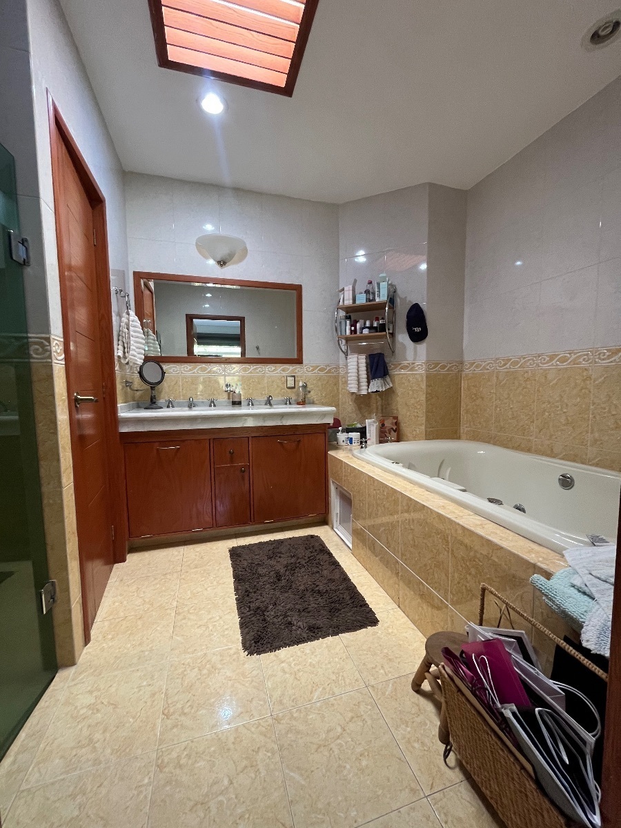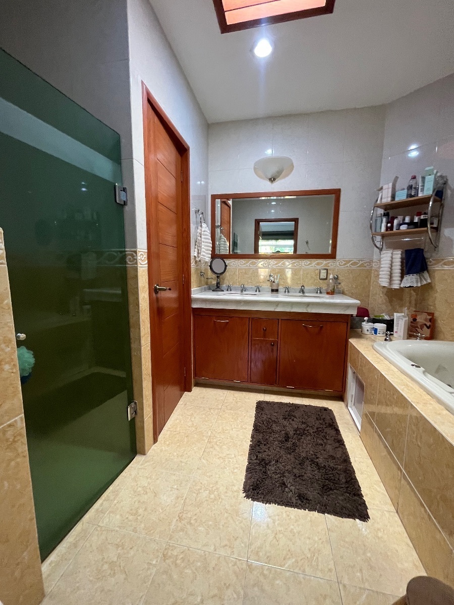 Upstairs, you will find two secondary bedrooms overlooking the garden, each with a full bathroom and spacious closets, as well as the master bedroom with a balcony, large walk-in closet, full bathroom, and jacuzzi, ideal for relaxing after a long day. In addition, the house has a solar heater for your comfort and energy savings.