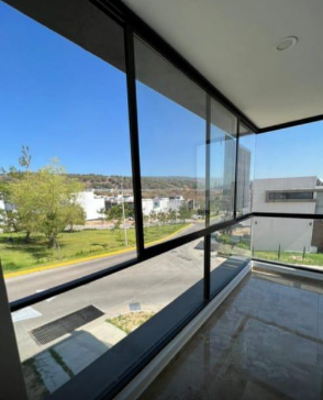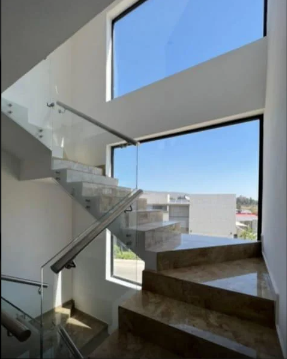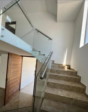 La casa tiene bonitos acabados, piso de porcelanato, barandal de cristal, y amplias
