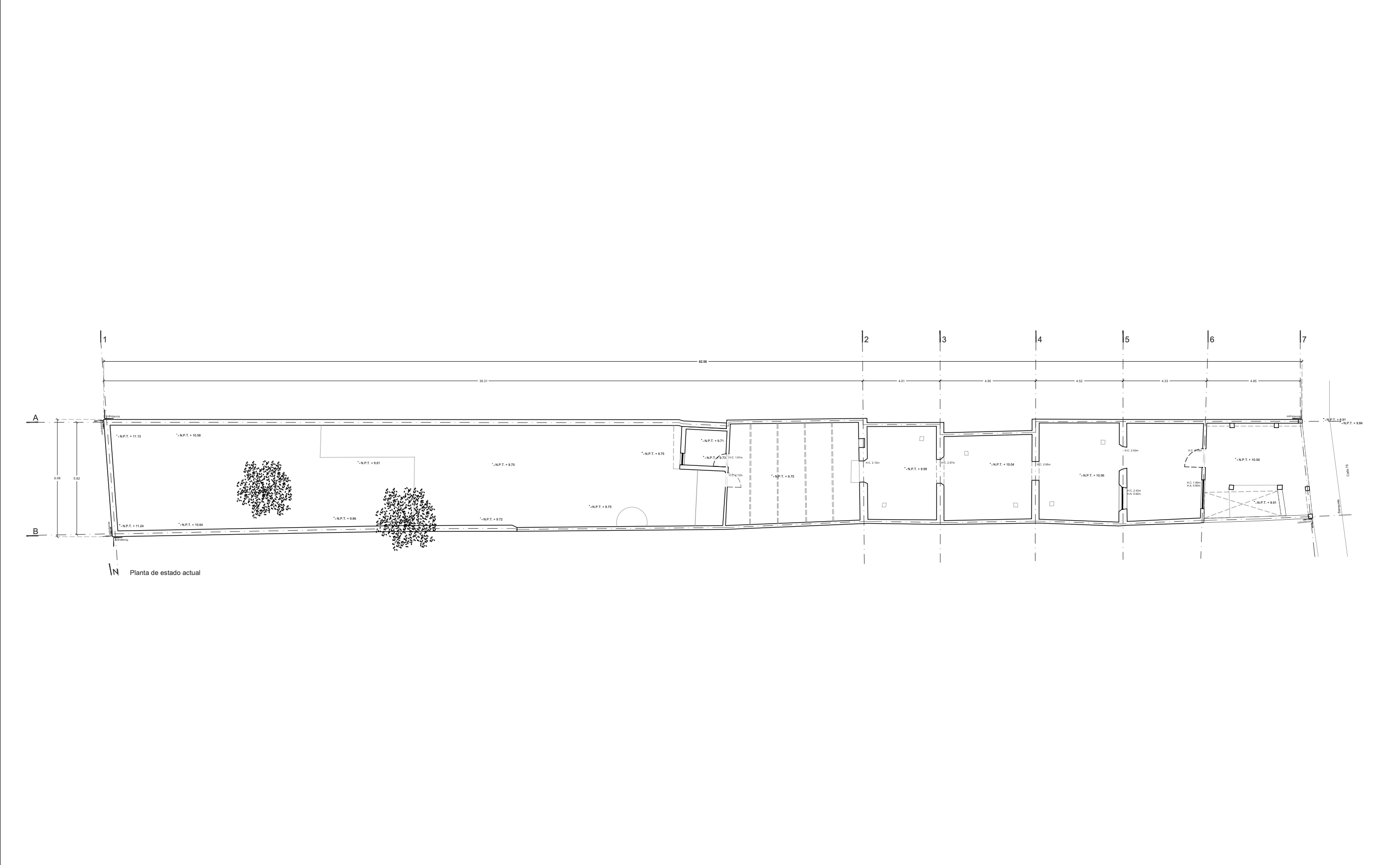 La propiedad consta de una pequeña casa antigua construida al frente y jardín en la parte posterior, con un terreno angosto hacia la calle con una gran profundidad.