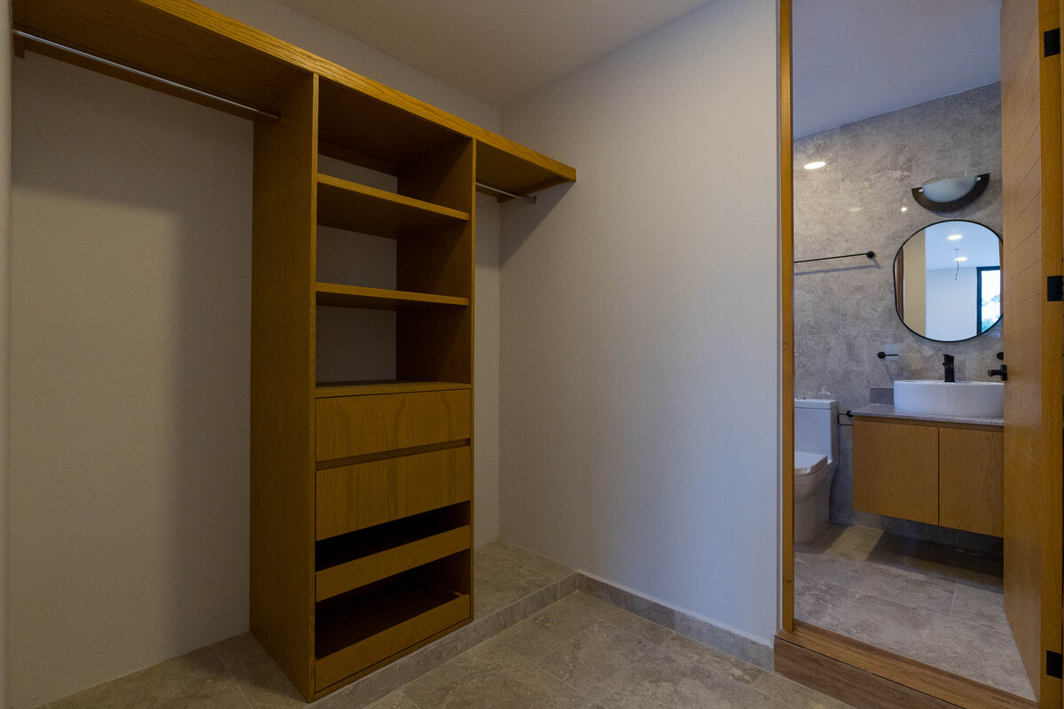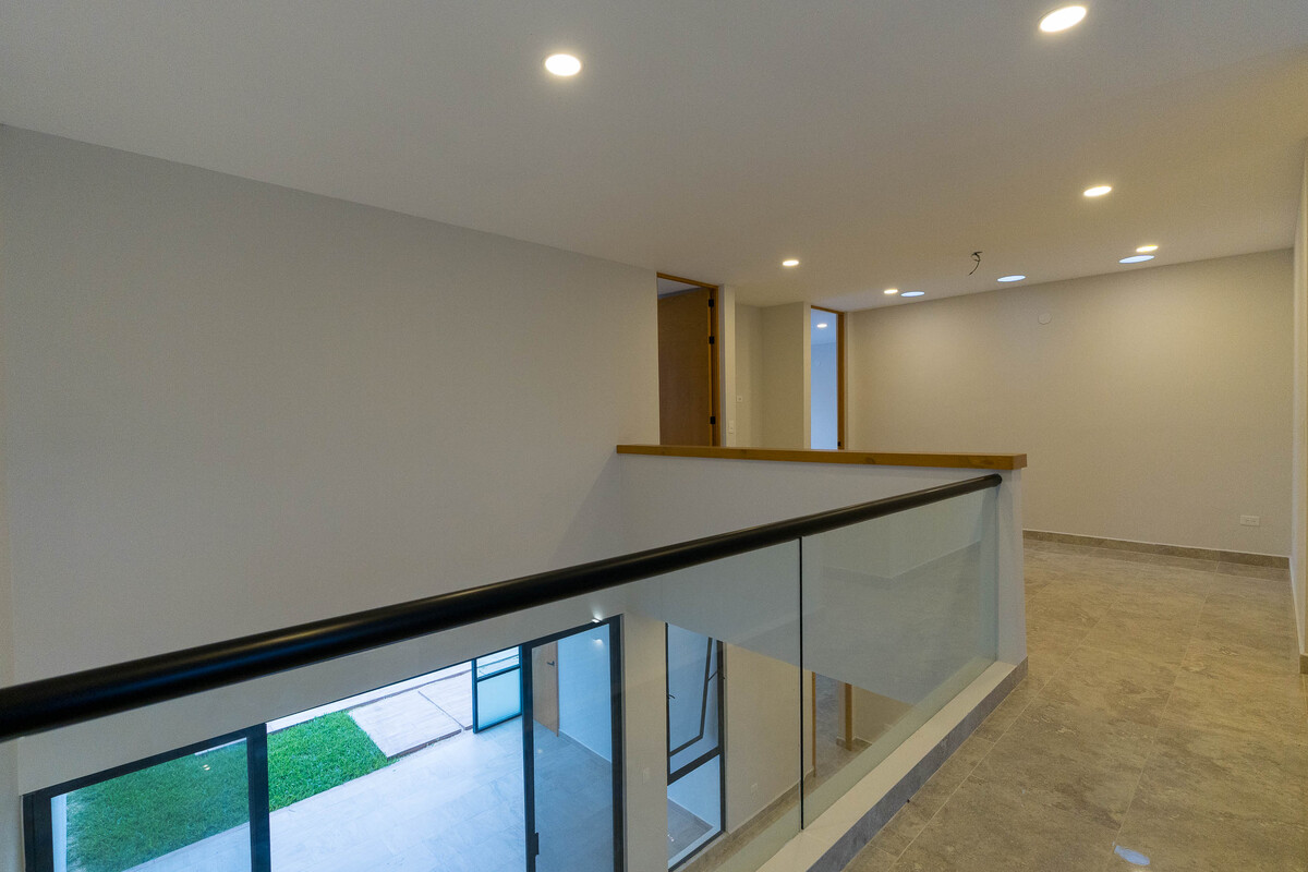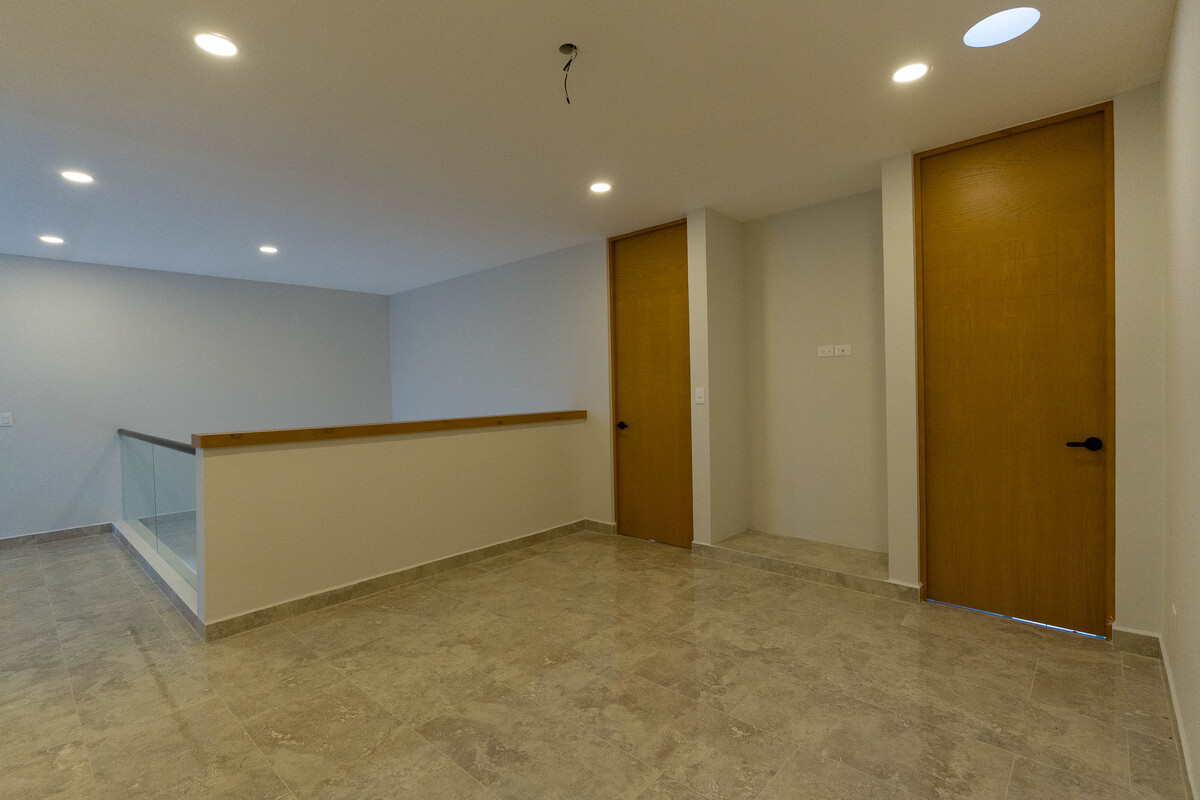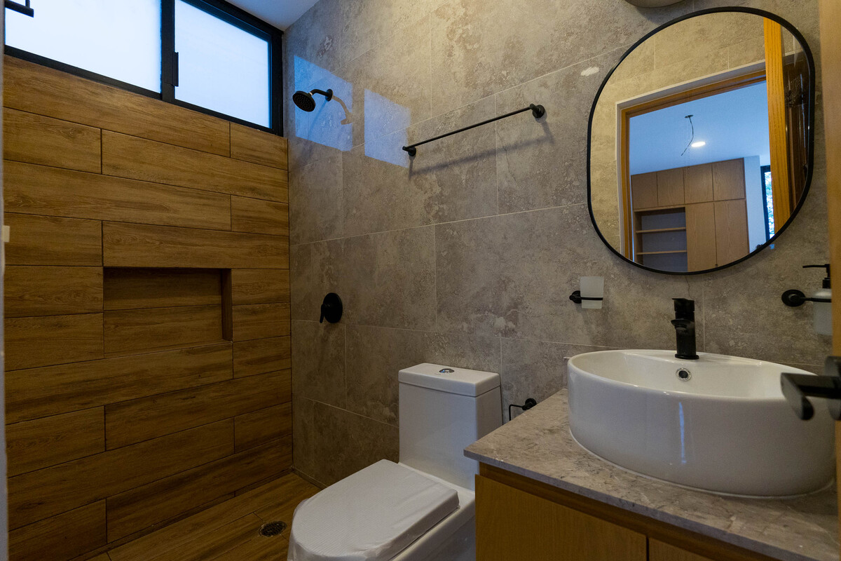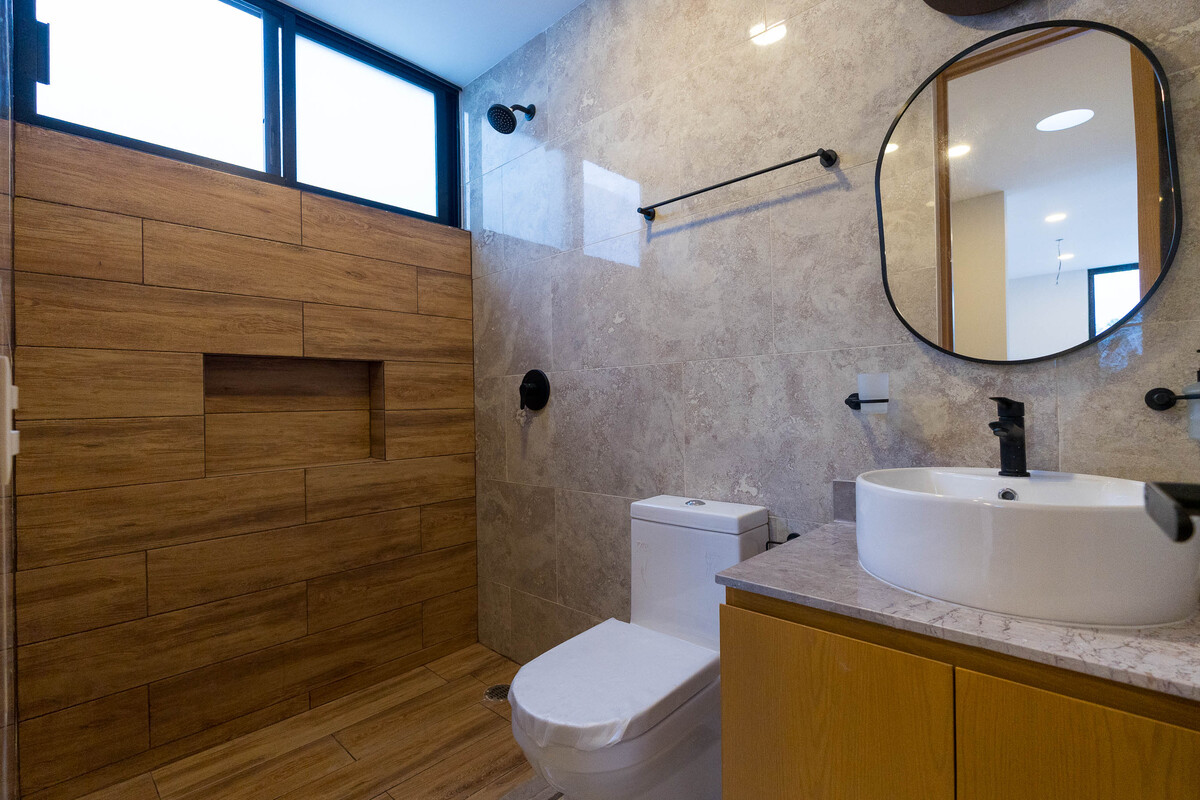 Recámara 1 con vista al área social y tiene un ventanal que abre al exterior. con closet vestido, y baño completo.