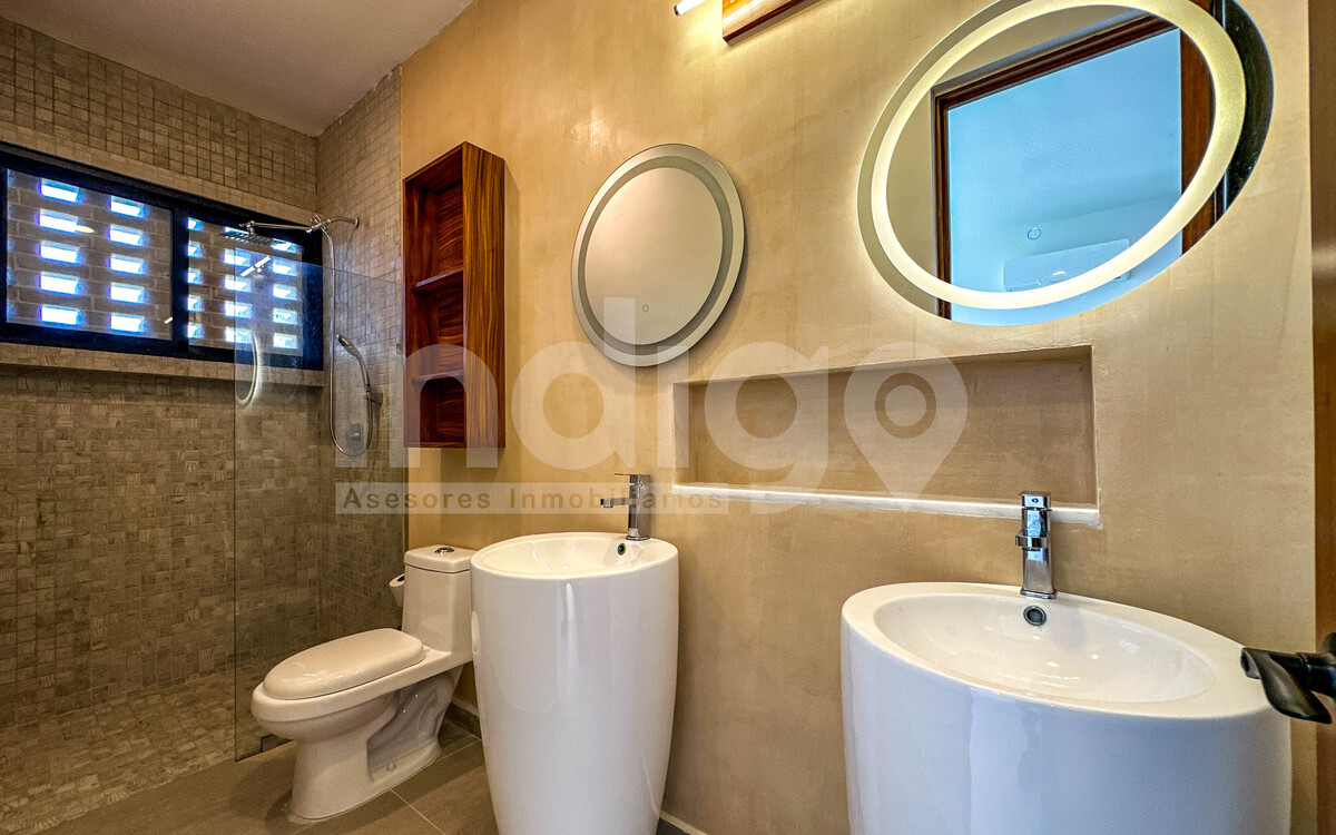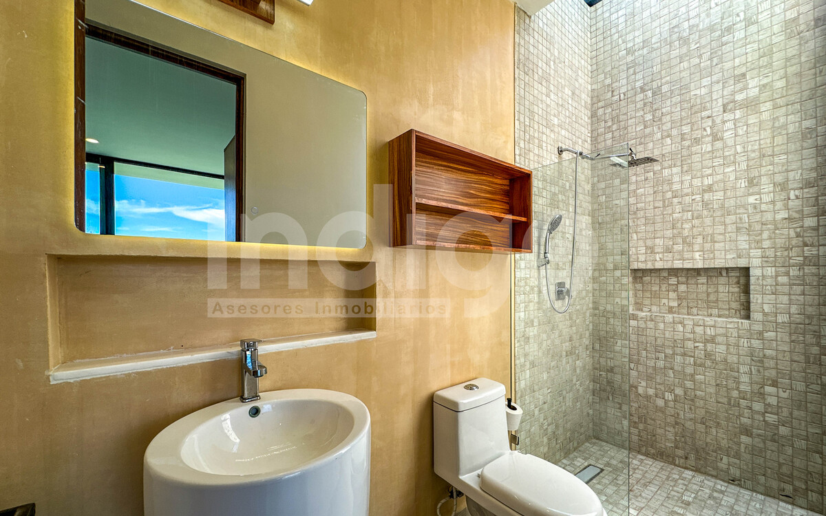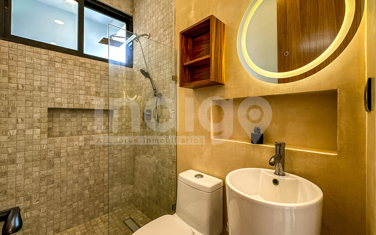 - Baño completo que brinda servicio a las visitas y a la recámara secundaria