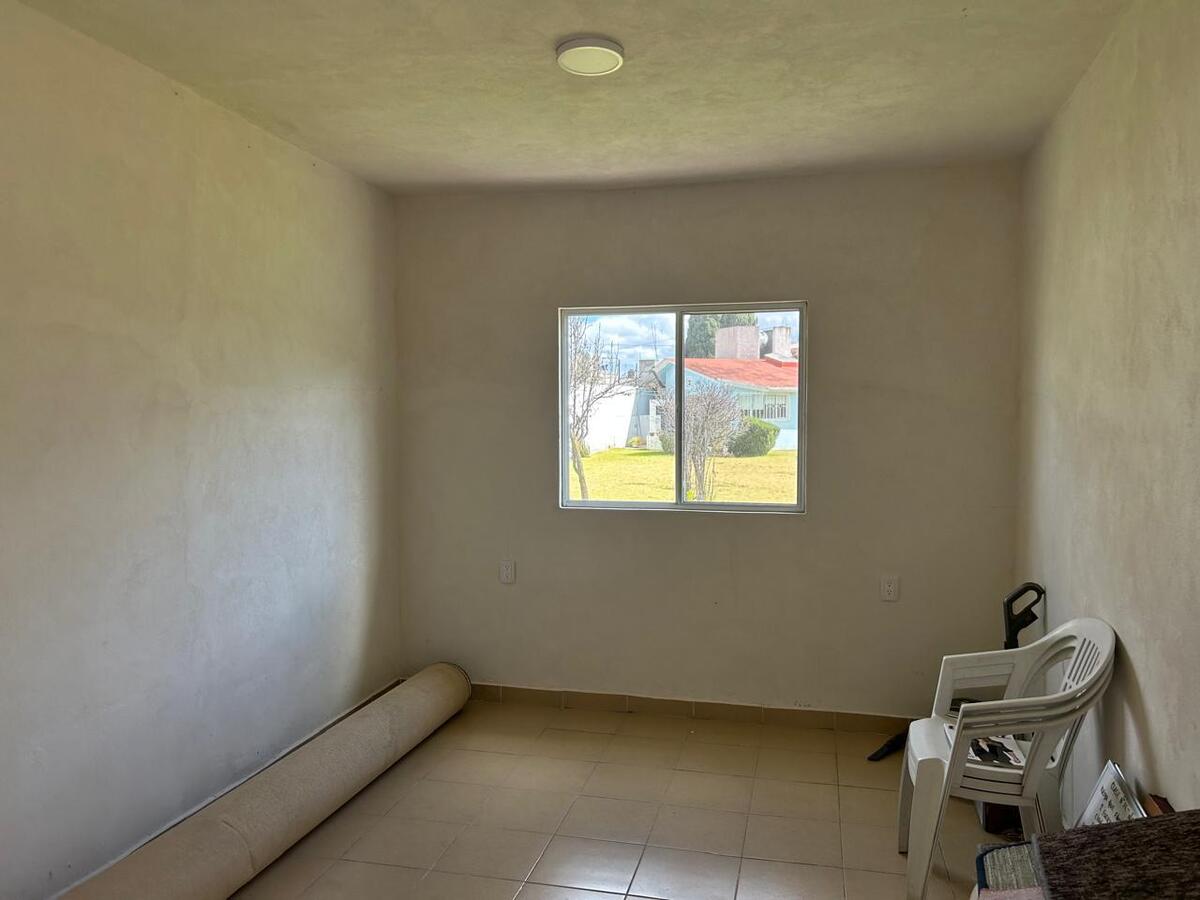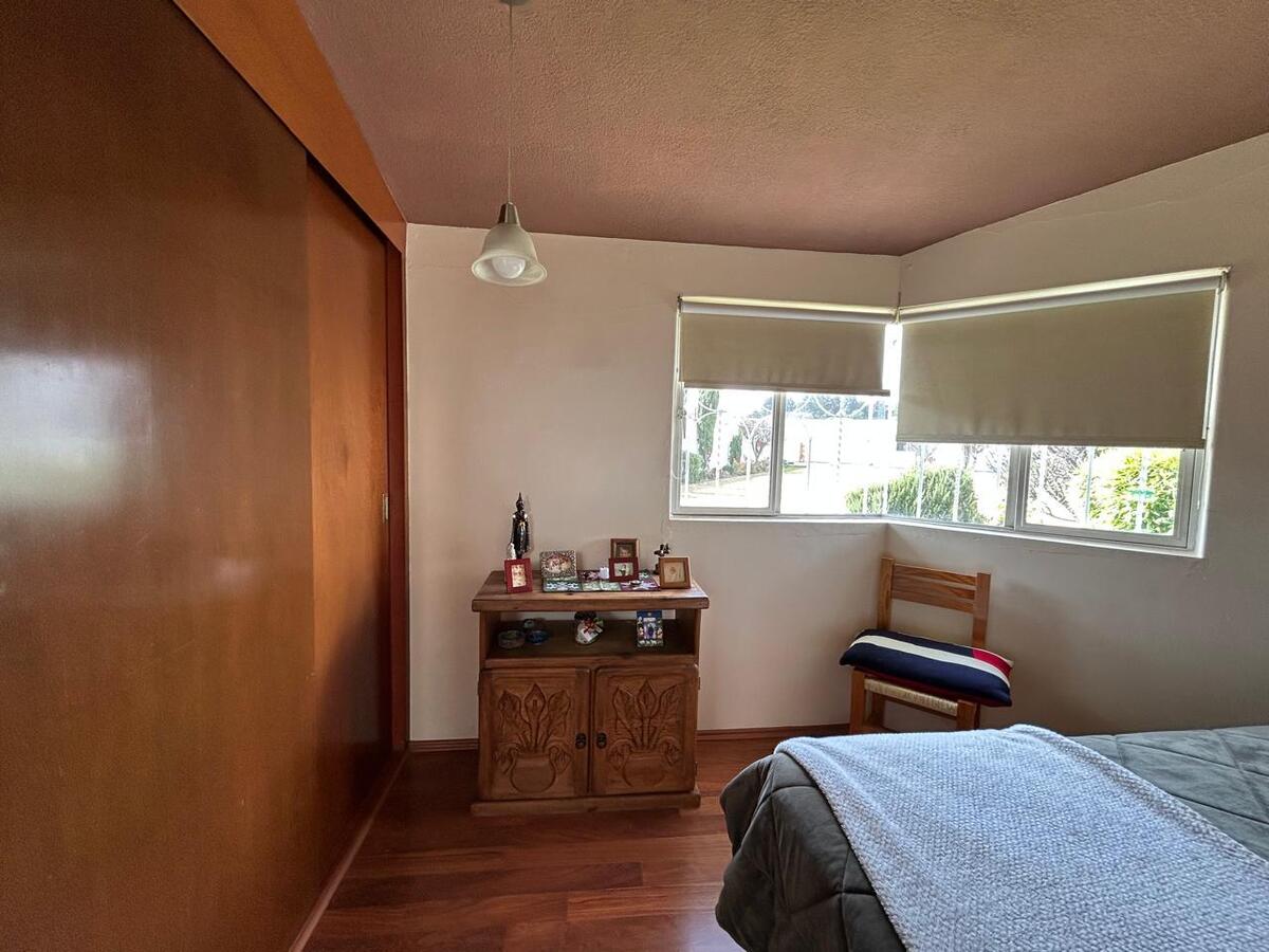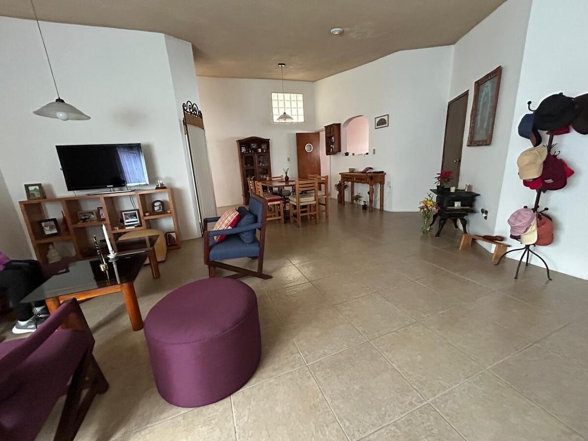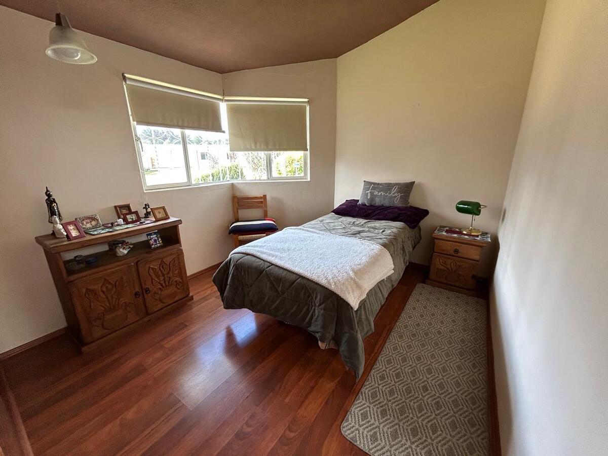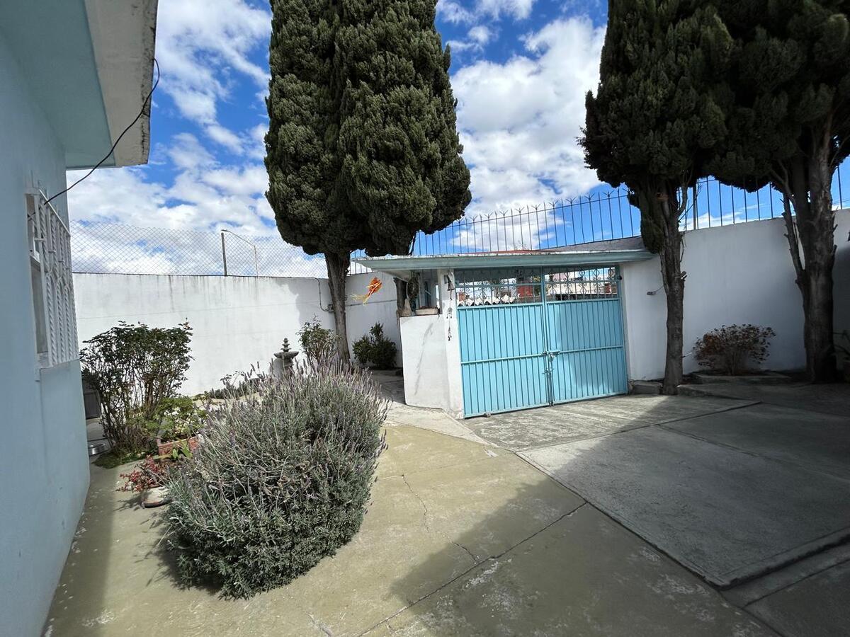 House for Sale on one floor in Metepec, San Miguel neighborhood, a few blocks from the center. It has a garage for four cars, a very large garden with fruit trees, with a hall at the back and two more spaces as small lounges or study space or other use, it has a living room, dining room, half bathroom for guests, study, masonry kitchen with breakfast area, distribution hallway with four bedrooms, with closet, one shared bathroom and one more in the bedroom. Ideal for those who wish to enjoy a warm and comfortable space, in an excellent location, close to shopping centers, schools, and main communication routes. The house has a cistern, LP gas. Not applicable for mortgage loans, it has registration. For more information contact the promoters.