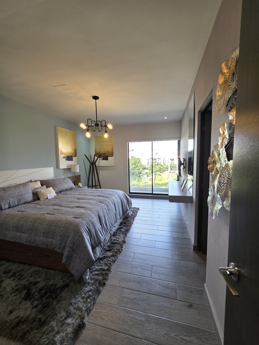Recamara principal con balcon, amplio baño completo y vestidor.