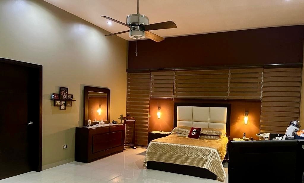 La casa tienes 6 recámaras 4 en planta alta 1 en planta baja con preparación para personas de la tercera edad. Y una más en el nivel menos uno, cada una con baño completo y vestidor.