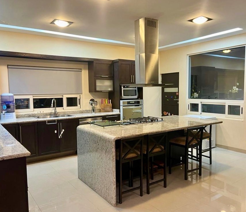 Tiene finos acabados y la decoración interior es bellísima, la cocina integral en madera sólida con una cubierta de granito. En los gabinetes tiene luz indirecta, además tiene alarma y preparación para cámaras de seguridad.