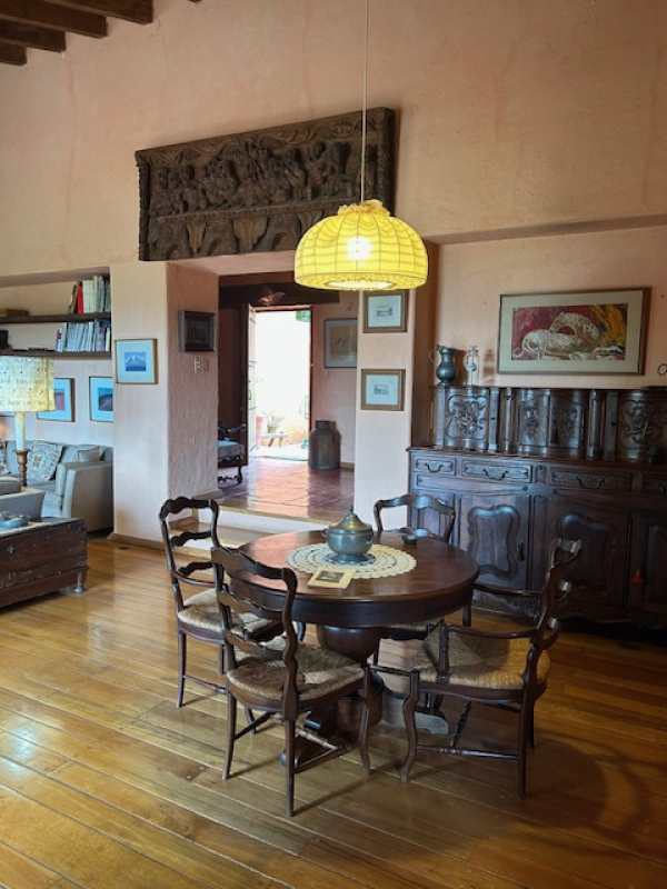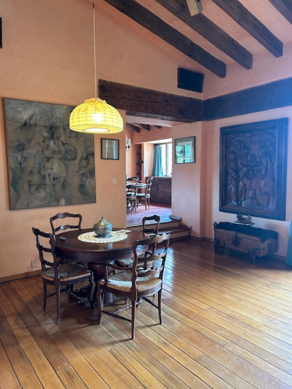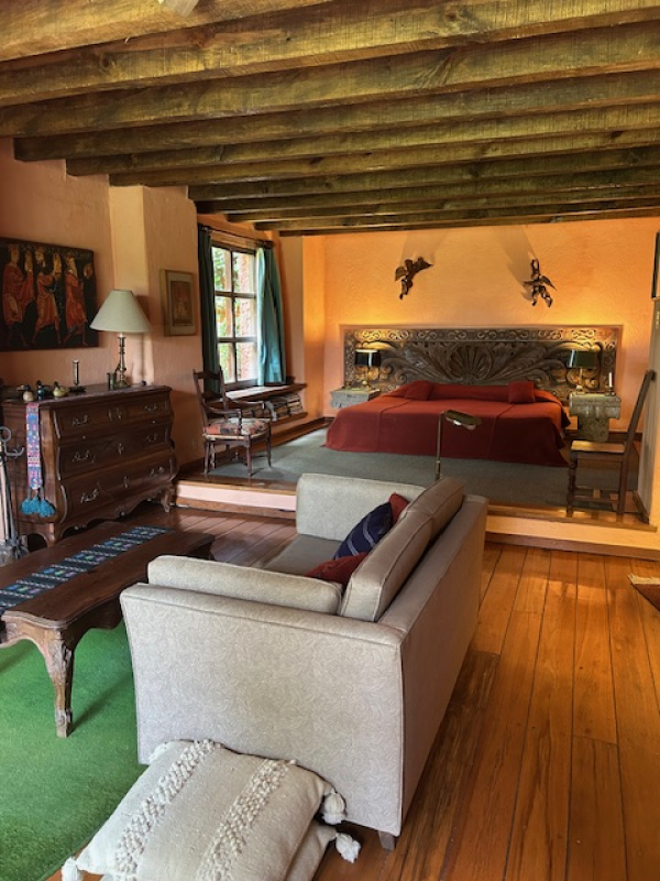 La casa cuenta con cuatro recámaras y una suite principal que incluye: salita con chimenea y un estudio; vestidor, baño completo y también sauna, ideal como refugio personal de los anfitriones. Los espacios sociales son generosos y luminosos: amplia sala con gran chimenea, hermosa y funcional cocina que se integra de manera armoniosa al comedor. Amplísima terraza con asador, espacio perfecto para fiestas y reuniones que ofrece una inmejorable vista de los volcanes Popocatépetl e Iztaccíhuatl.