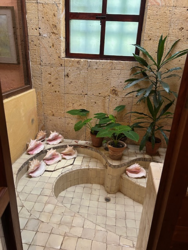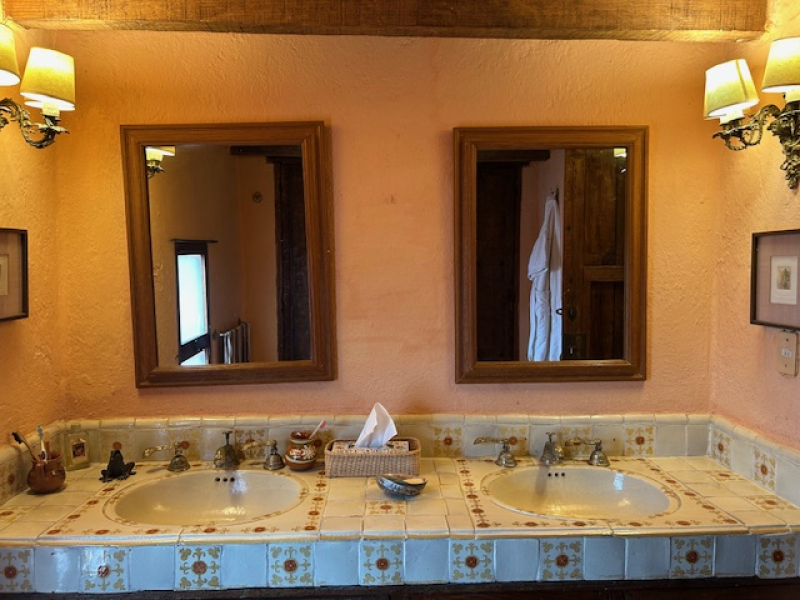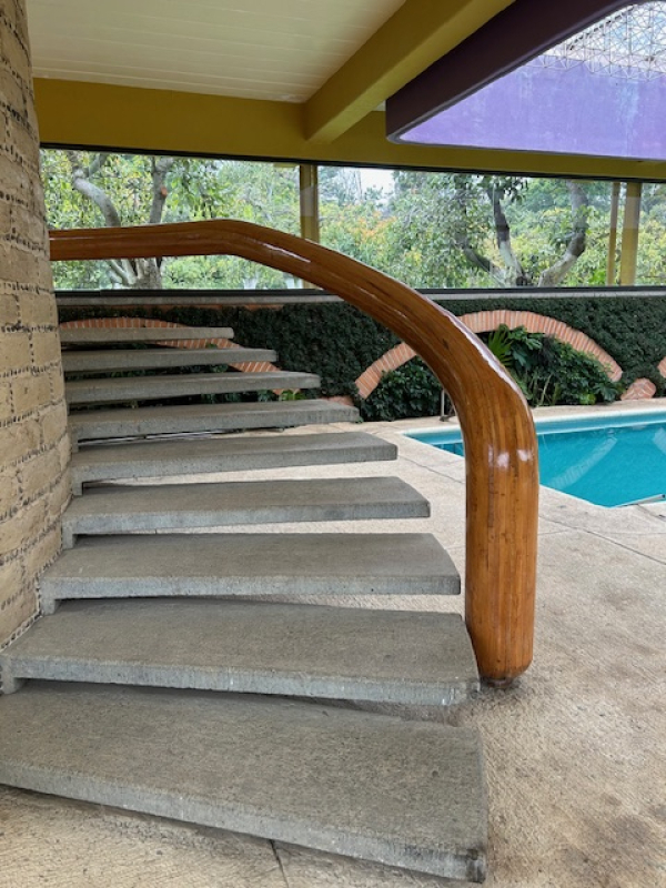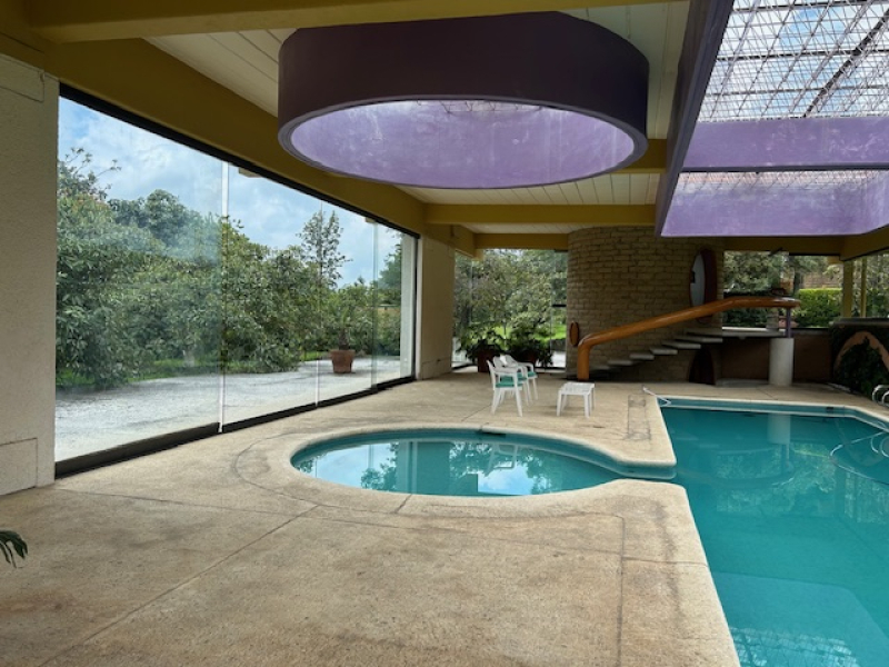 Además, cuenta con una hermosa alberca cubierta, de 4.3 m de altura, con 12.5 metros de largo y tres carriles de nado; con baño, regaderas y caldera. Esta alberca apta para utlizarse durante todo el año, incluye amplia terraza y se integra al paisaje de forma extraordinaria, es diseño del reconocido arquitecto mexicano Jaime Ortiz Monasterio.