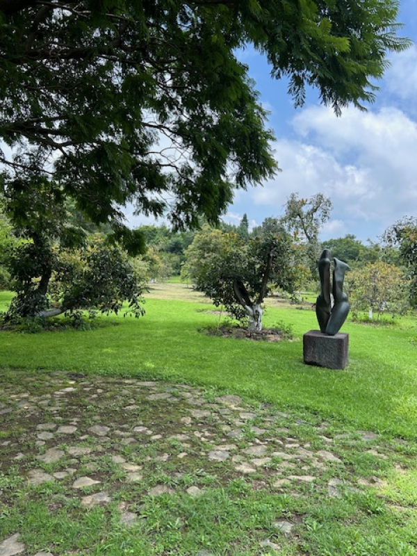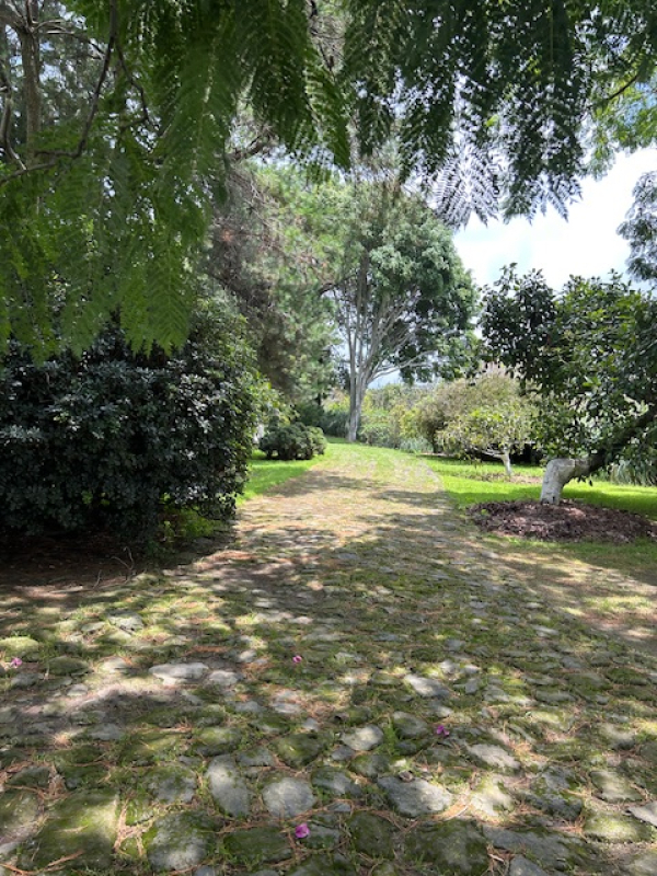 La casa está rodeada por extensas áreas verdes que brindan un ambiente de paz y privacidad: jardines y un huerto de aguacates orgánicos con más de 150 árboles, además de espacios para el cultivo de hortalizas.