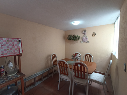 La casa cuenta con sala comedor., cocina integral, área de lavado y patio de servicio, 2 baños completos y 3 recamaras.