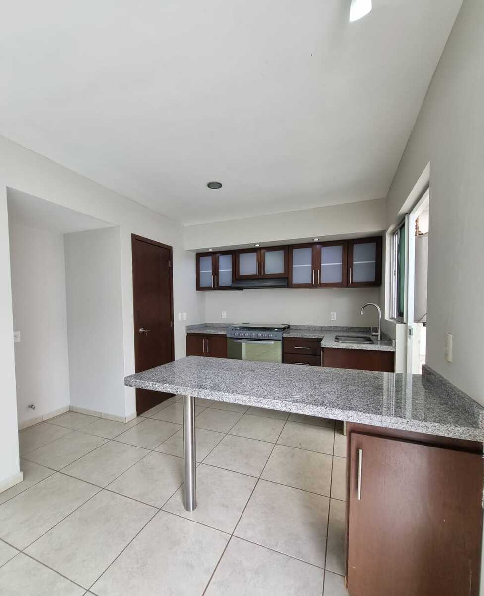 Cocina integral con barra de granito y amplia alacena