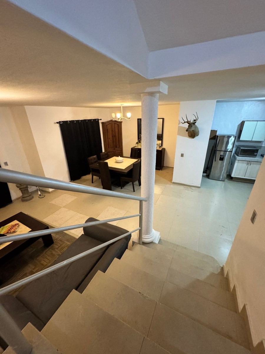 PB: cochera para 2 autos techados, terraza, área de sala y comedor , cocina equipada con refrigerador estufa, medio baño para visitas y cuarta recámara o estudio.