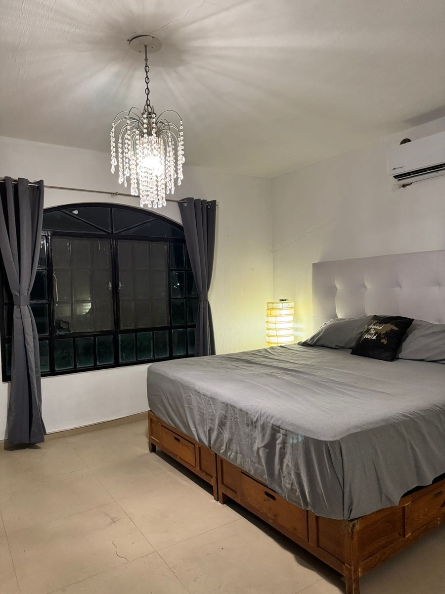La casa cuenta con cortinas y AC.
