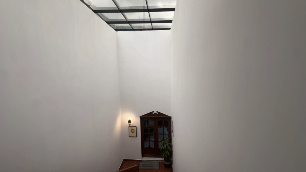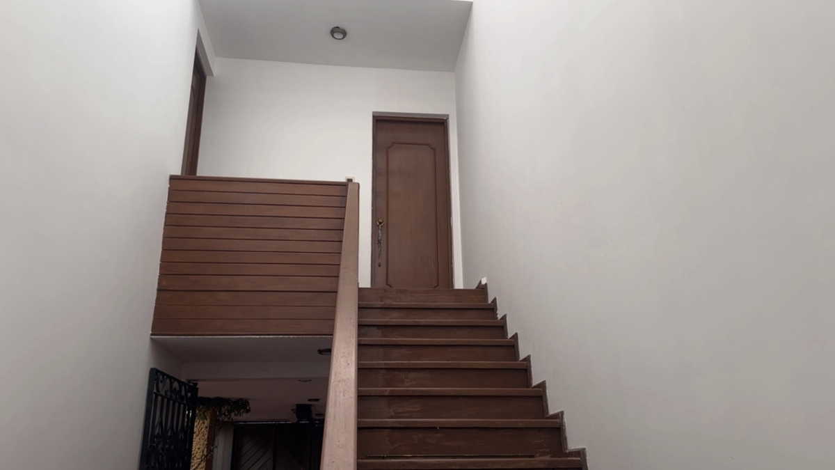 Antes de la entrada principal, la casa cuenta con un cubo con doble altura, el cual conduce, a través de unas escaleras muy bonita, a un espacio ideal para oficina y una habitación adicional, perfecta para estudio o cuarto de visitas.
