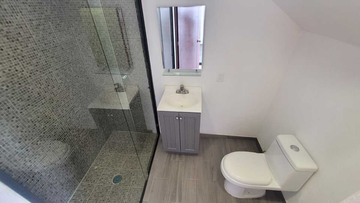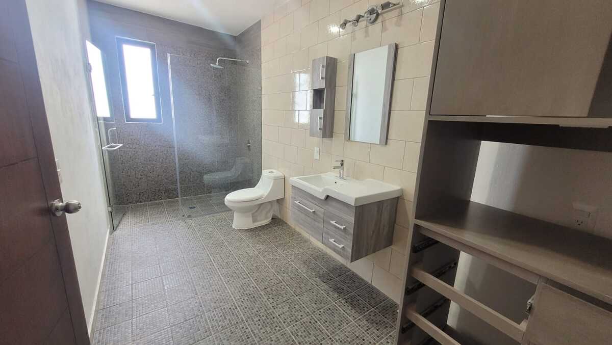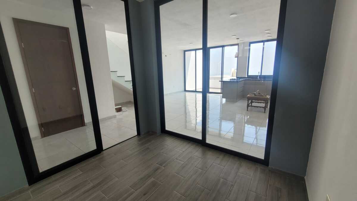En planta alta cuenta con estar de televisión, cuarto de lavado, recámara secundaria con baño completo y recámara principal con vestidor, baño completo y terraza con vista al condominio.
