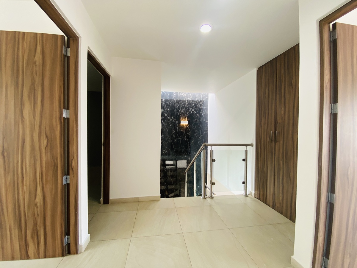 En planta alta encontrarás 4 amplias habitaciones, todas con closets y 1 baño compartido, la principal con vestidor, baño completo y terraza con una hermosa vista.