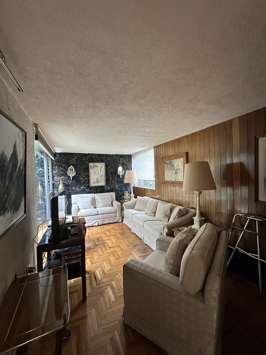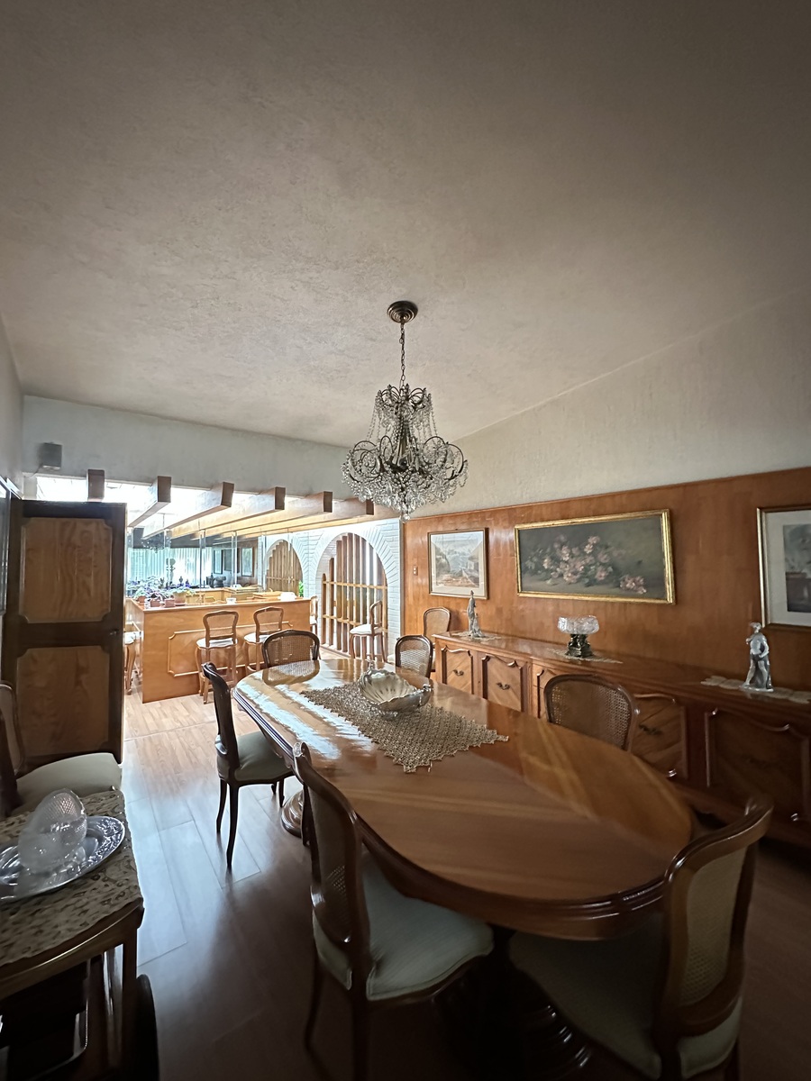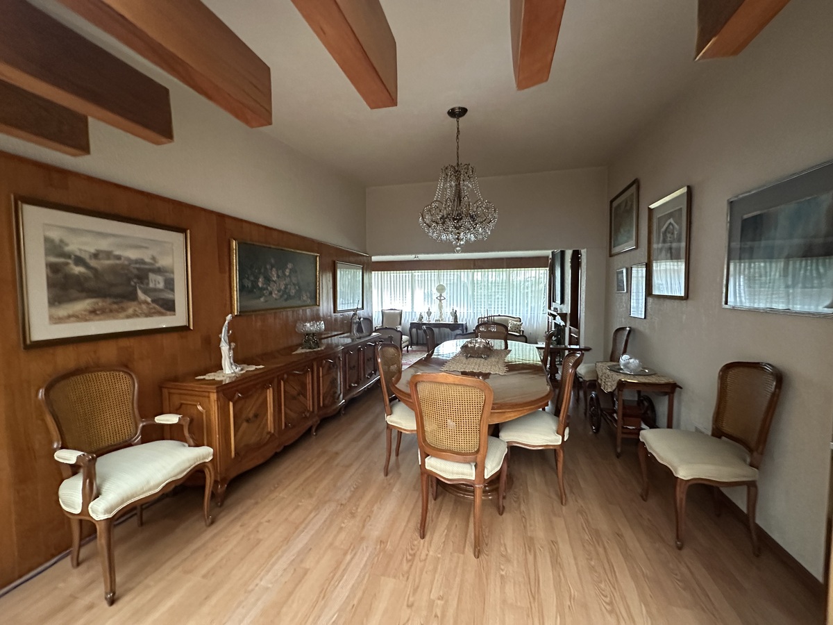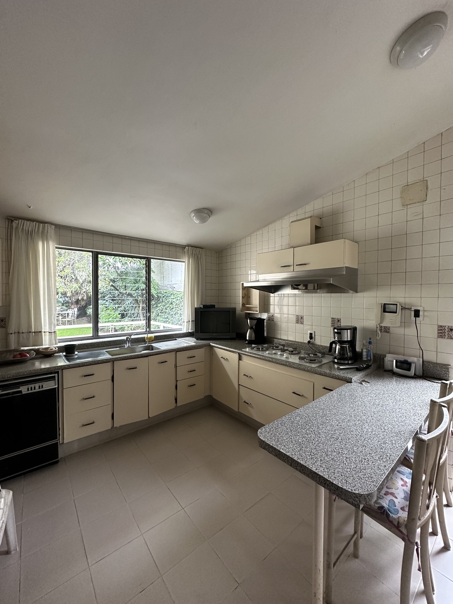 Sala bastante amplia con comedor y un bar muy iluminado. Antecomedor con bonita vista y cocina amplia. Dos bodegas, cuarto de servicio con baño y estacionamiento para 4-5 autos.