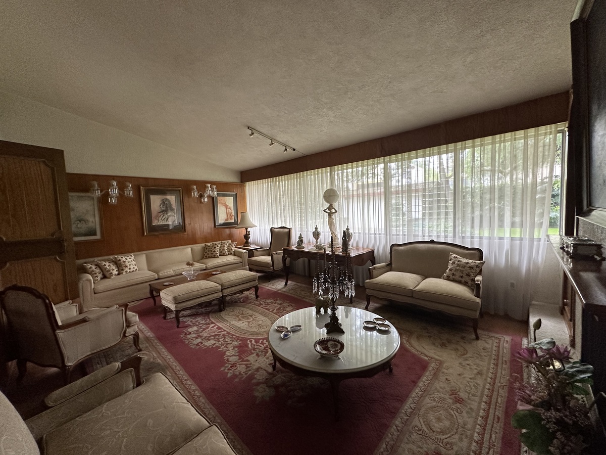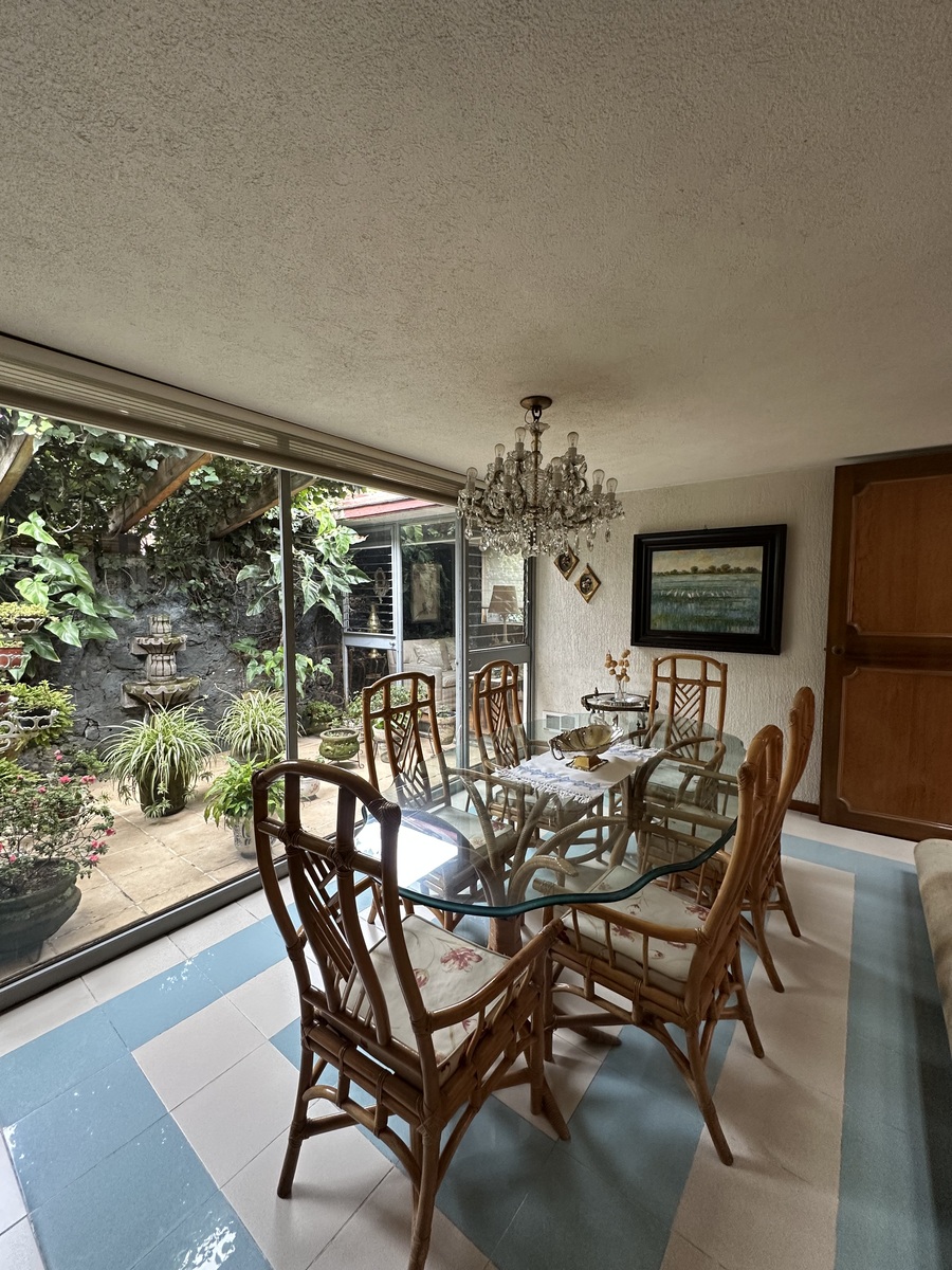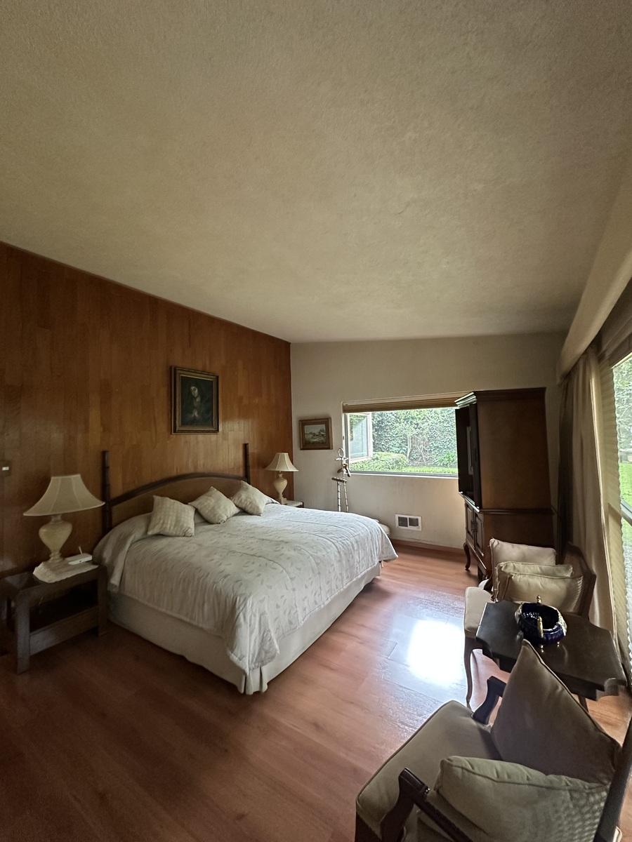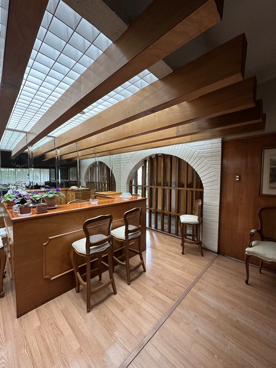 Sala bastante amplia con comedor y un bar muy iluminado. Antecomedor con bonita vista y cocina amplia. Dos bodegas, cuarto de servicio con baño y estacionamiento para 4-5 autos.